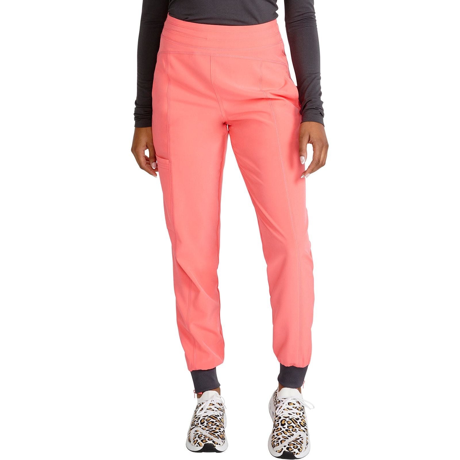 This Contemporary fit pull-on jogger has an incased elastic wide waistband with shirring at the back. Other features are front yoke and leg seams plus multi-needle top stitching along the legs. There are four pockets: two front in-seam pockets, one cargo pocket and one back pocket. The hem is finished with a partial rib-knit cuff and zippers. Tapered leg, 9 1/2" opening. Inseam: 26 1/2" Petite.