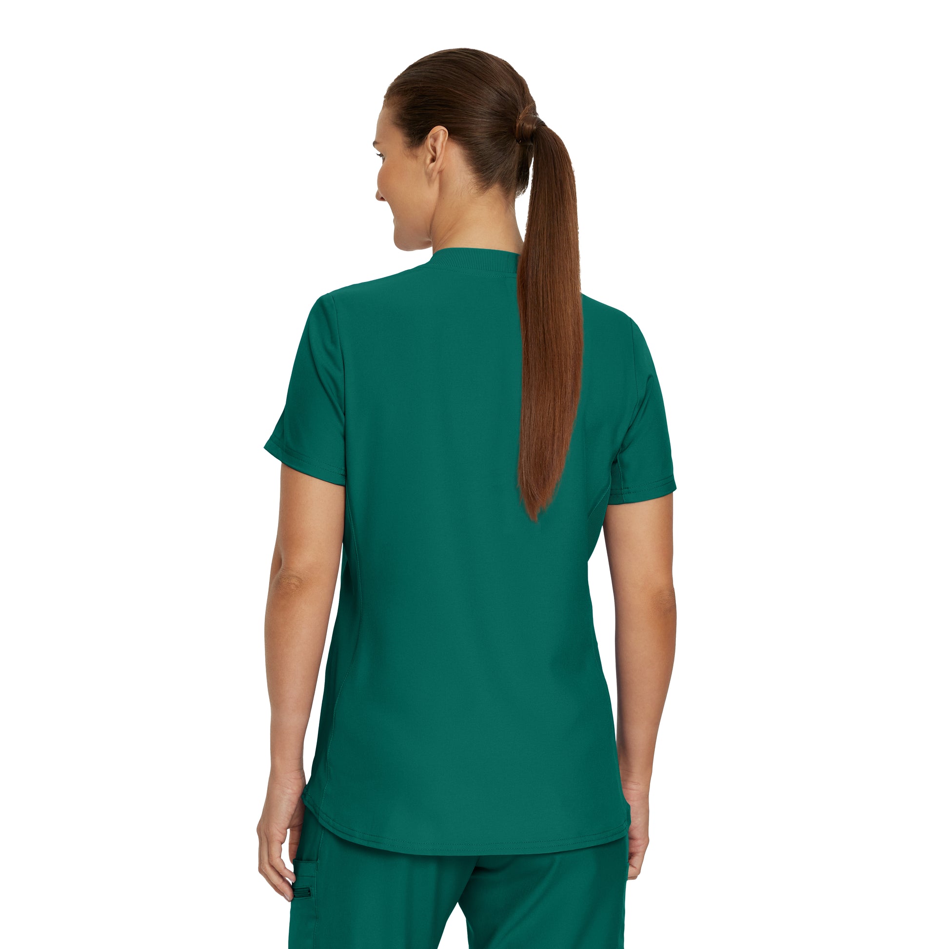 You will fall in love with this women's scrub top with its soft rib-knit side panels and neckband, which allow for comfort and ease of movement. Two front welt pockets and a badge loop provide plenty of storage and an on-seam zipper pocket keeps your items secure. Our modern tailored fit flatters your shape, while our moisture-wicking super stretch fabric provides the comfort and flexibility your work requires throughout the day.