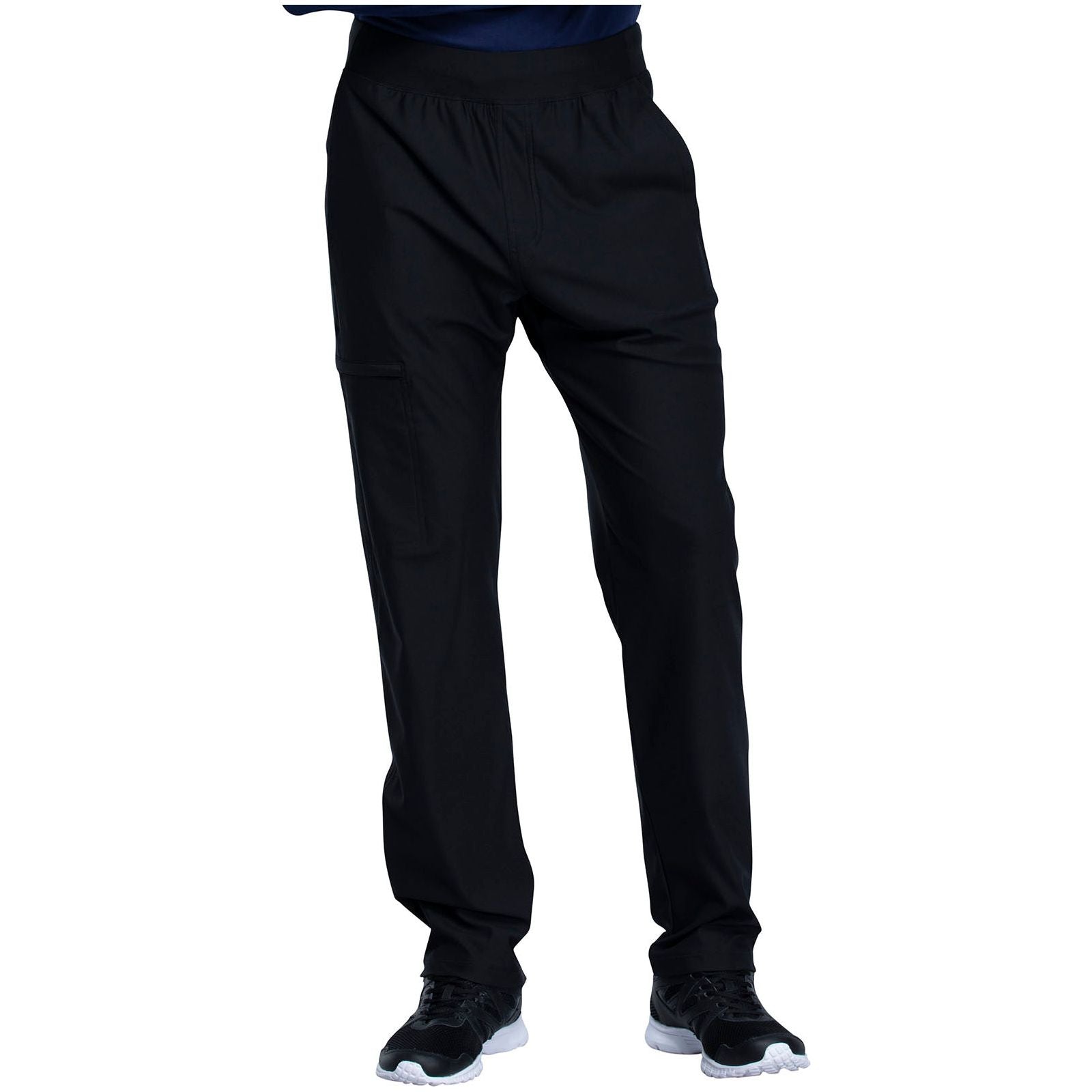 This Men's tapered leg pant features an enclosed elastic waistband, faux front fly, front angled pockets, two back in-seam pockets at back yoke seam, and one roomy side cargo zip pocket. This active-inspired, form-contouring pant is ultra-comfortable with optimal stretch, and adjustable side zip vents. Men's Modern fit. Inseam: 31" Leg Opening: 14 1/2"