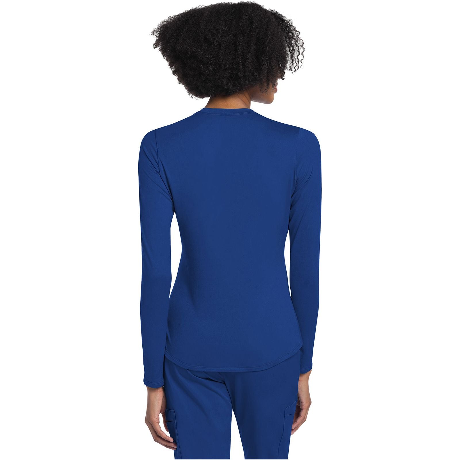 This long sleeve underscrub knit tee is perfect for layering. The classic crew neck looks great under scrub tops on worn on its own. Stylish shirttail hem. Modern Classic fit. Center back length: 24 1/2"