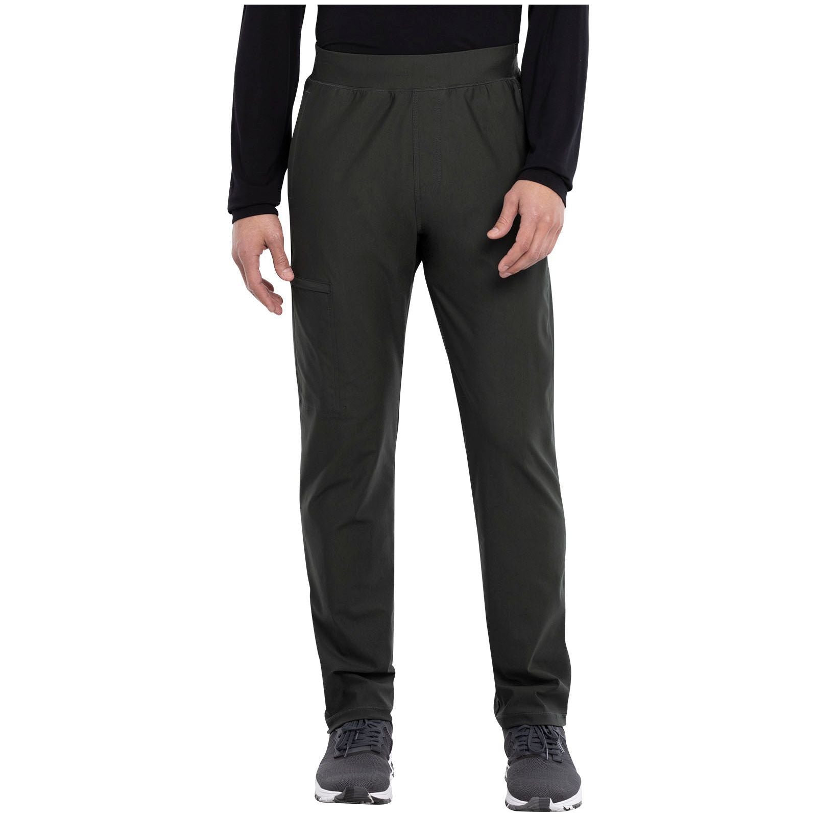 This Men's tapered leg pant features an enclosed elastic waistband, faux front fly, front angled pockets, two back in-seam pockets at back yoke seam, and one roomy side cargo zip pocket. This active-inspired, form-contouring pant is ultra-comfortable with optimal stretch, and adjustable side zip vents. Men's Modern fit. Inseam: 31" Leg Opening: 14 1/2"