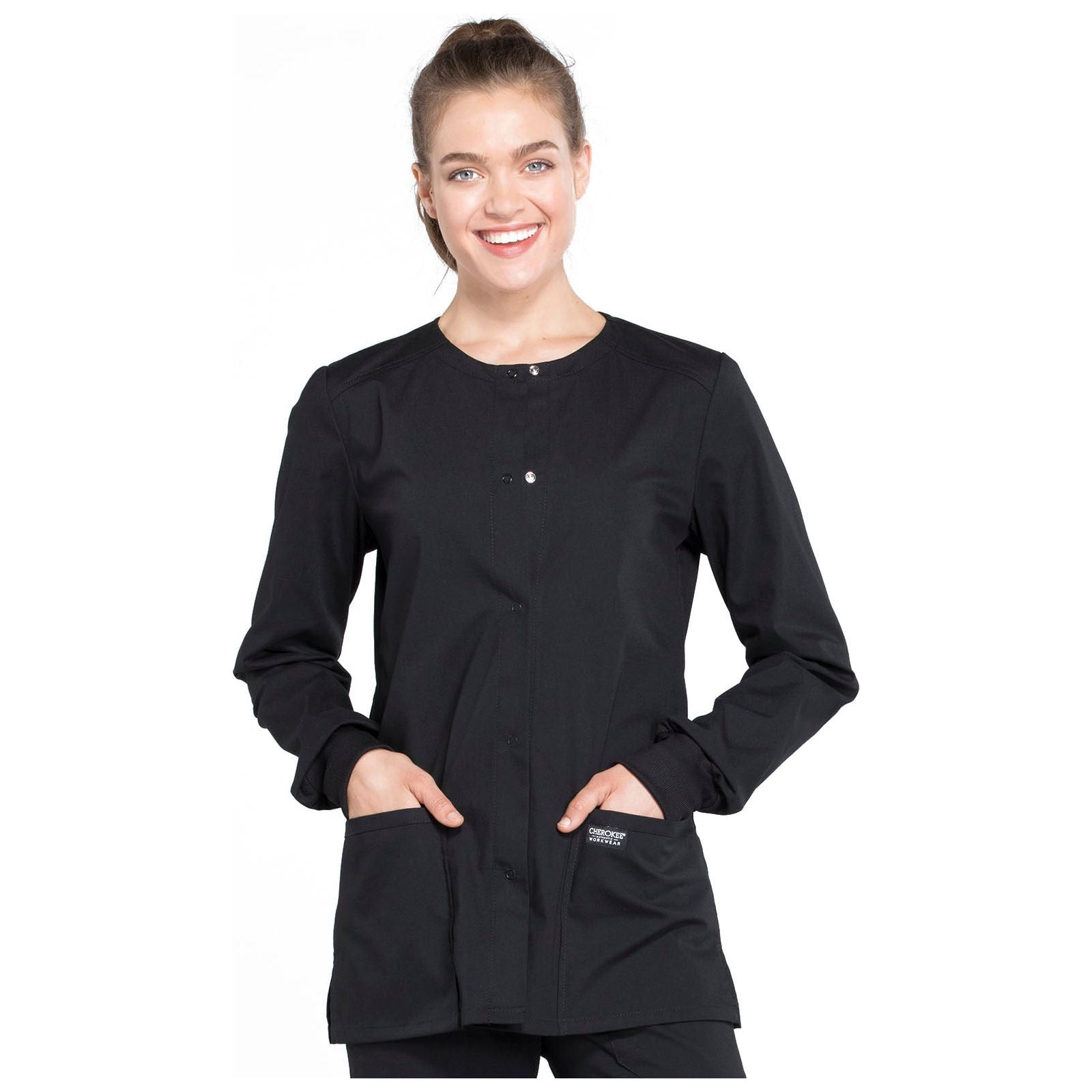 A Modern Classic fit, snap front jacket features two patch pockets (the right with an interior pocket, the left with a hidden instrument loop), a logo label with bungee loop, front and back princess seams, a back yoke, side vents and rib-knit cuffs. Center back length: 27 1/2"