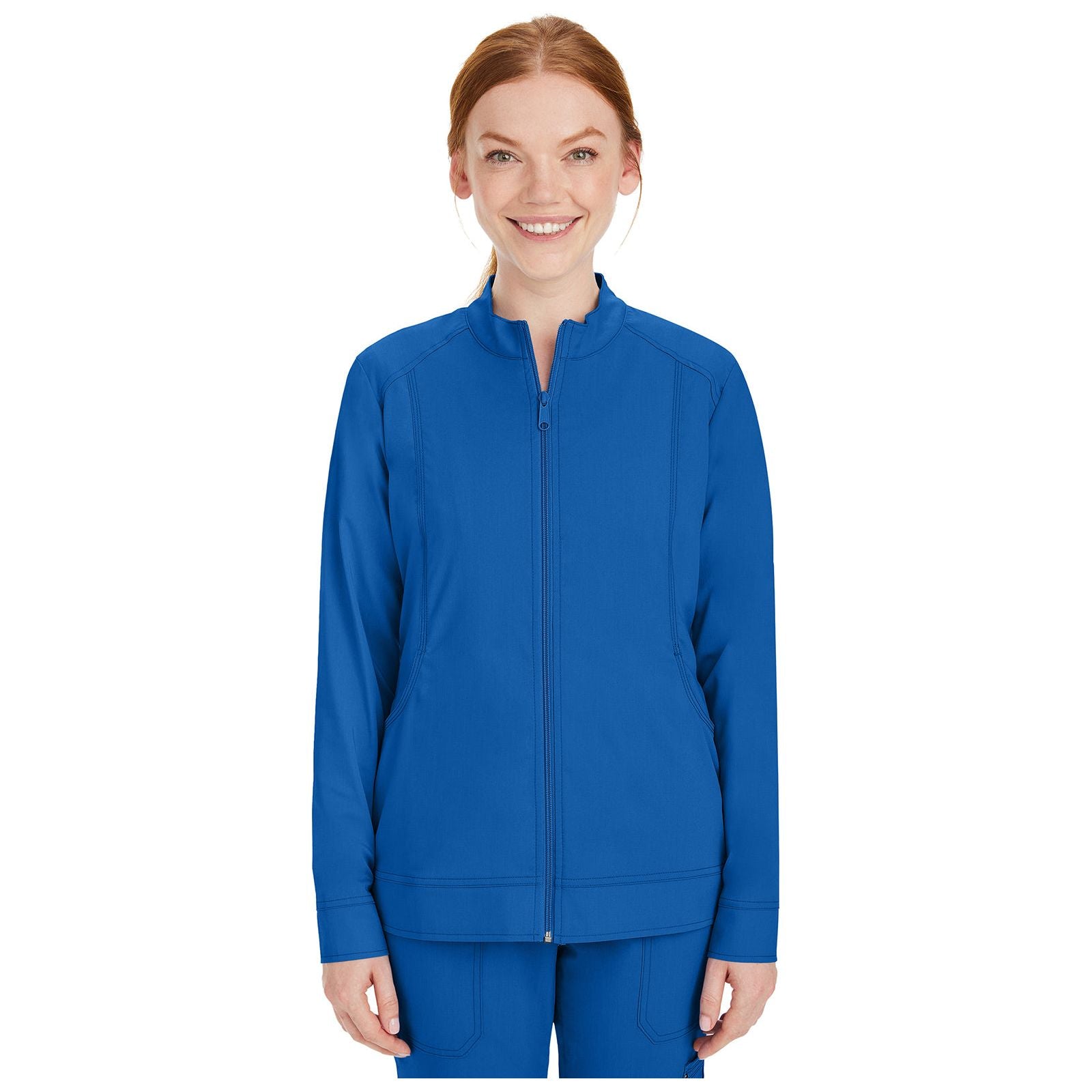 This zip-up jacket has a stand collar, soft knit cuffs, and princess panels that round into big kangaroo pockets. | DAKOTA JACKET - POLY / RAYON / SPANDEX L/SLV JKET W/MANDARIN C