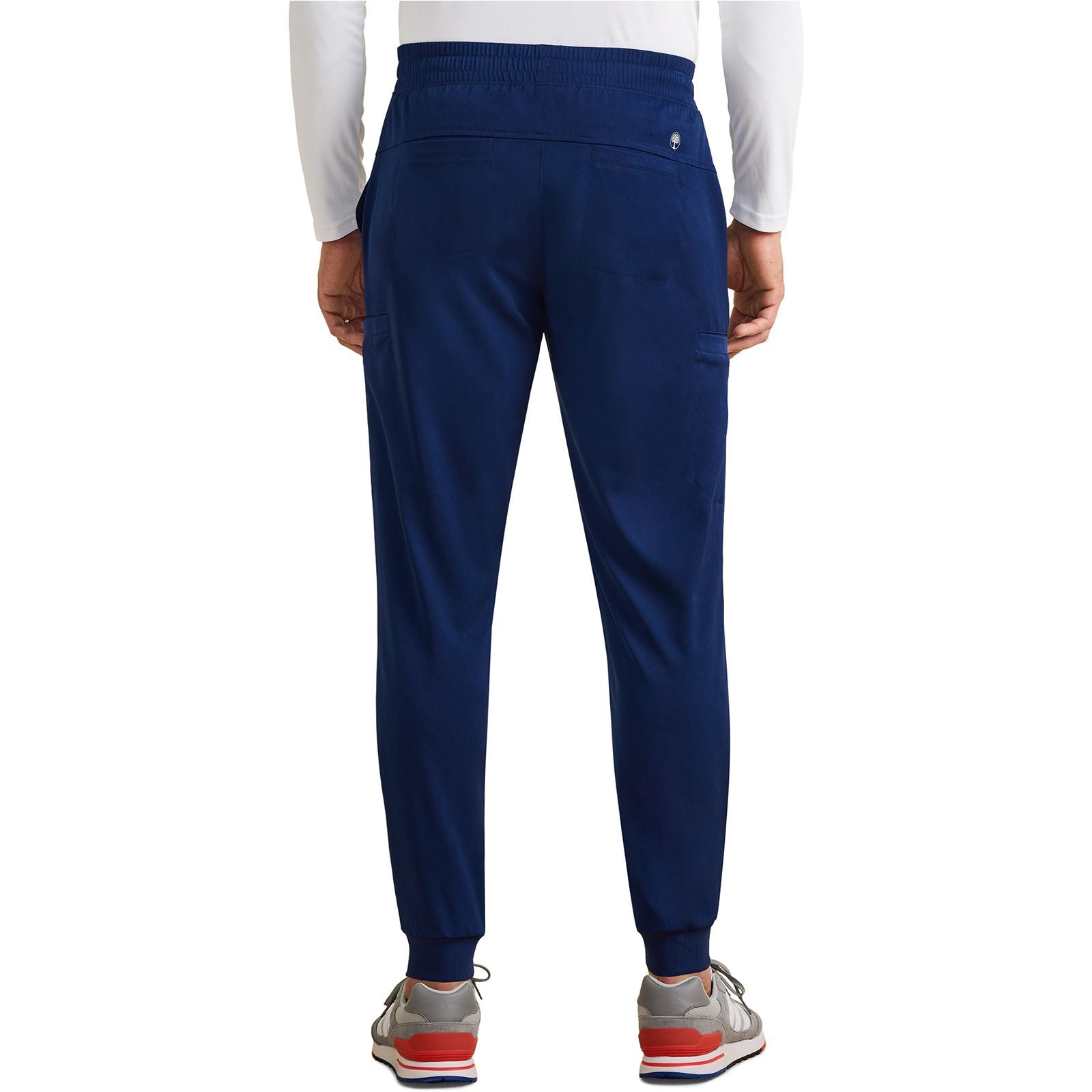 Made of a soft and stretchy fabric, the Rafael Men's Mid Rise Jogger features a zipper fly and elastic-reinforced waistband with drawstring. Seven pockets offer lots of organized storage: two front angled pockets, one cell pocket insider wearer's left front pocket, two welt cargo pockets, and two back welt pockets. Back yoke for a better fit. Tonal rib-knit cuffs complete this men's jogger scrub pant. Modern fit. Tapered jogger leg, 9" opening. Inseam: 29"