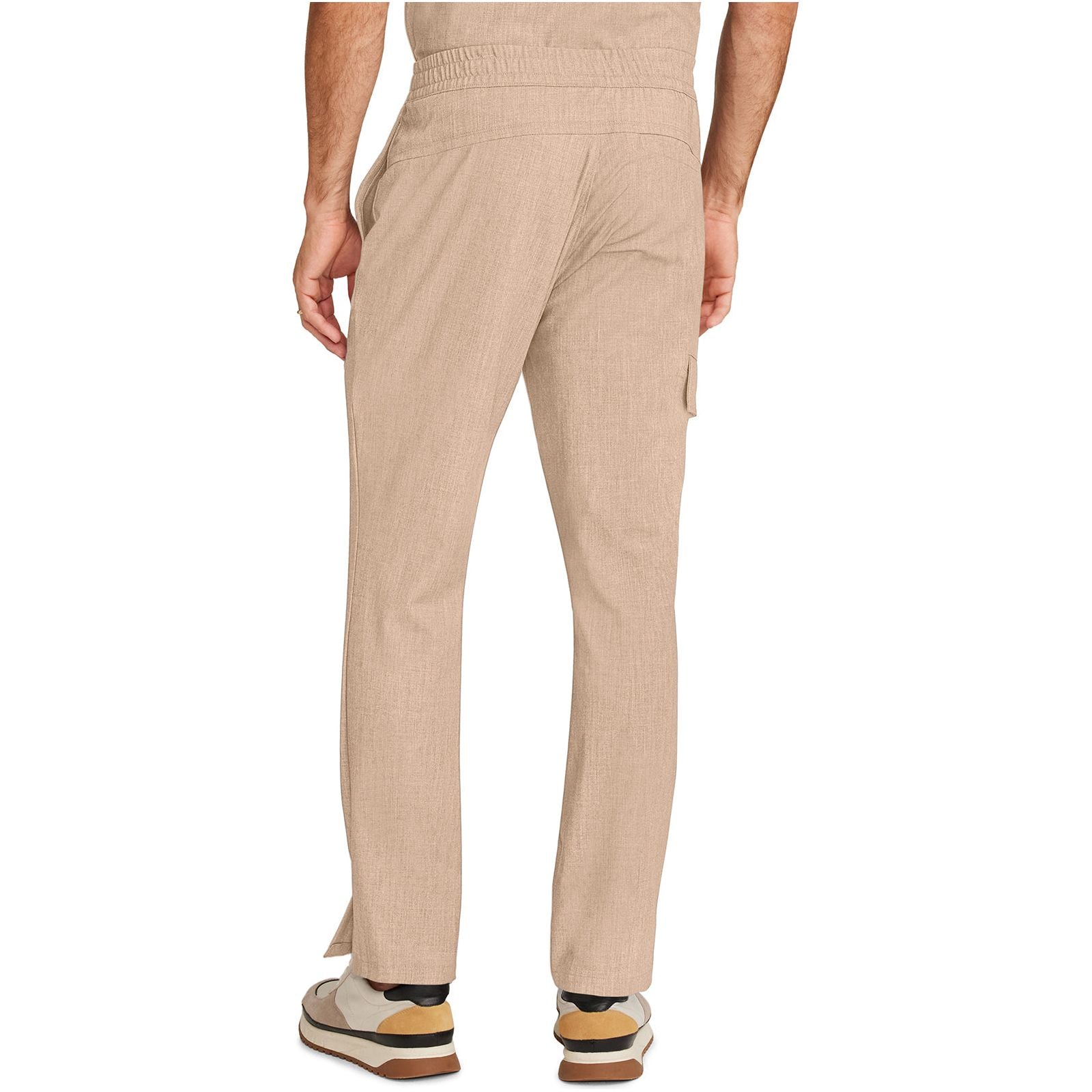 Style and comfort combine for one very wearable pant. The Angelo mid rise pant features an elasticized waistband, webbed drawstring, and zipper fly. There are four pockets for organized storage: two front pockets, one flap cargo pocket on the wearer's right side, and one back welt pocket. Flap cargo pocket converts to a welt pocket for easy entry. Printed pocket bags for added detailing. Curved back yoke for a better fit across the hips. Side vents at hem. The soft four-way stretch fabric includes moisture wicking for added comfort. Modern fit. Straight leg, 16" opening. Inseam: 31"