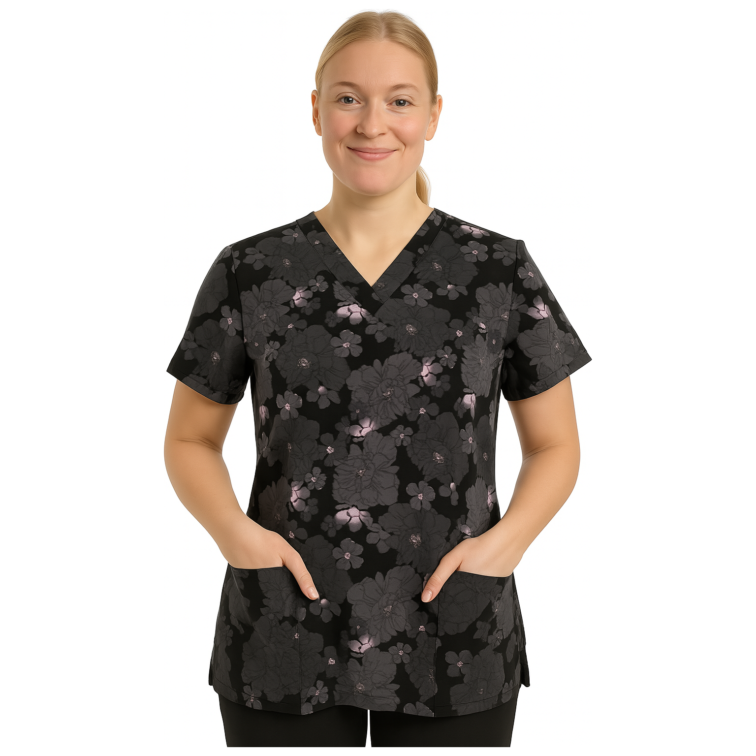 White Cross Women's 2-Pocket STRETCH V-Neck Print Scrub Top