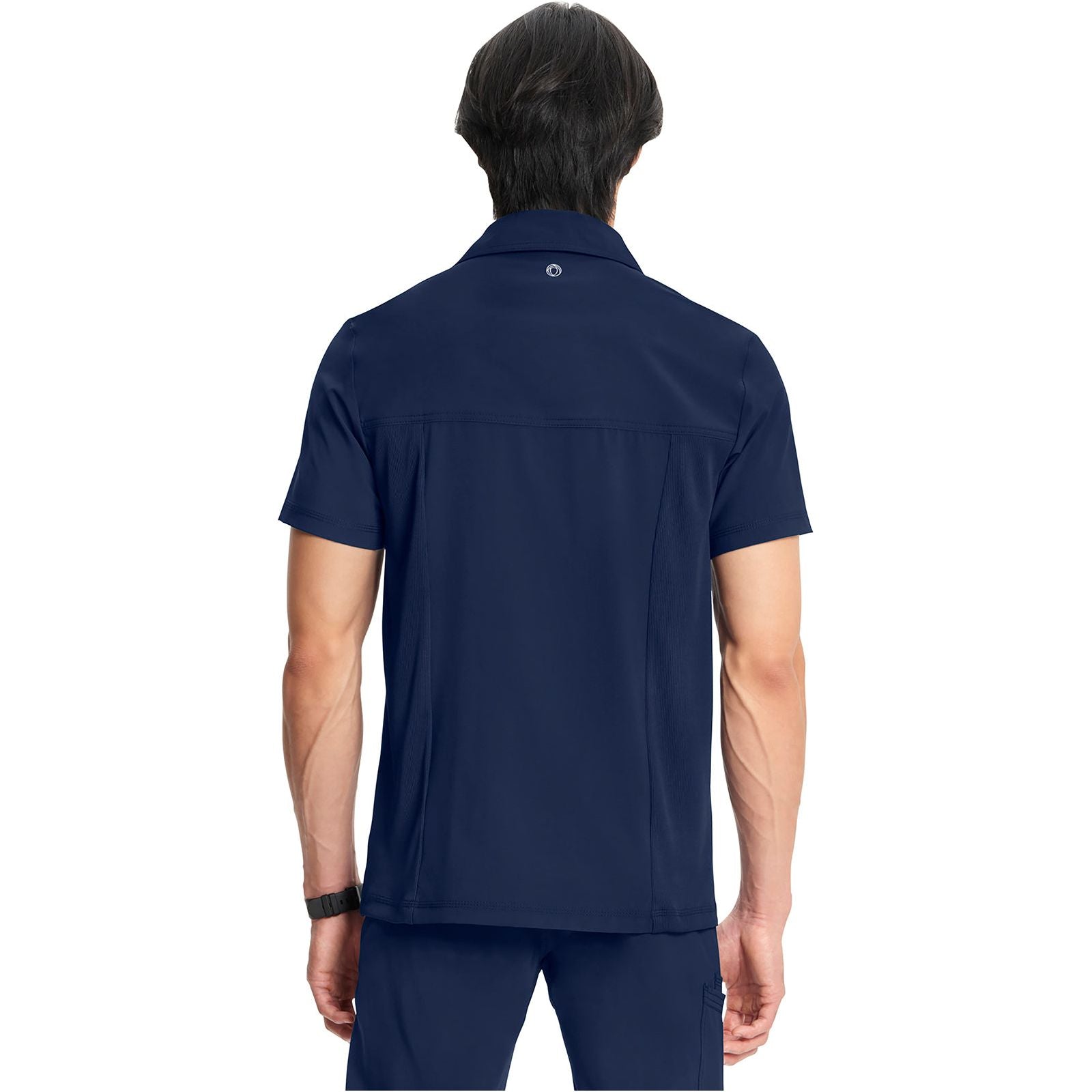 This Men's Modern fit polo top features a zipper chest pocket and rib-knit back side panels for extra movement and comfort This top can easily transition from work to the weekend and looks great tucked in or untucked. Center back length: 29 1/2"