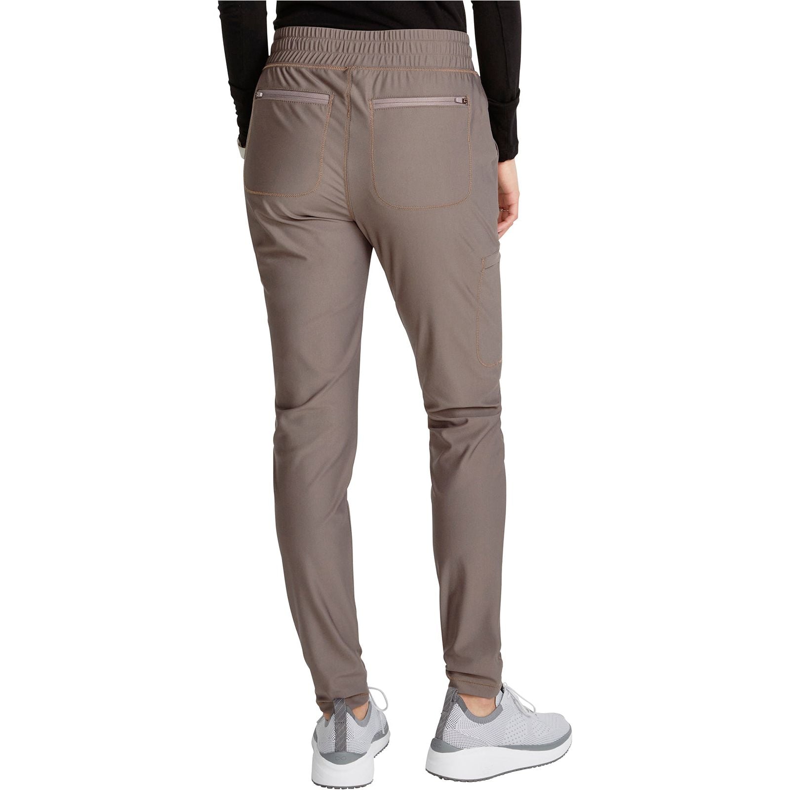 This Contemporary fit mid rise pull-on pant has a interior elastic and drawstring waistband, slimming side panels from the waistband to the cuffs, and self knit cuffs. There are six pockets: two front zip pockets, one back welt pocket, two welt cargo pockets, and one power mesh utility pocket on the wearer's left cargo pocket. Tapered jogger leg, 9" opening. Inseam 28 1/2"