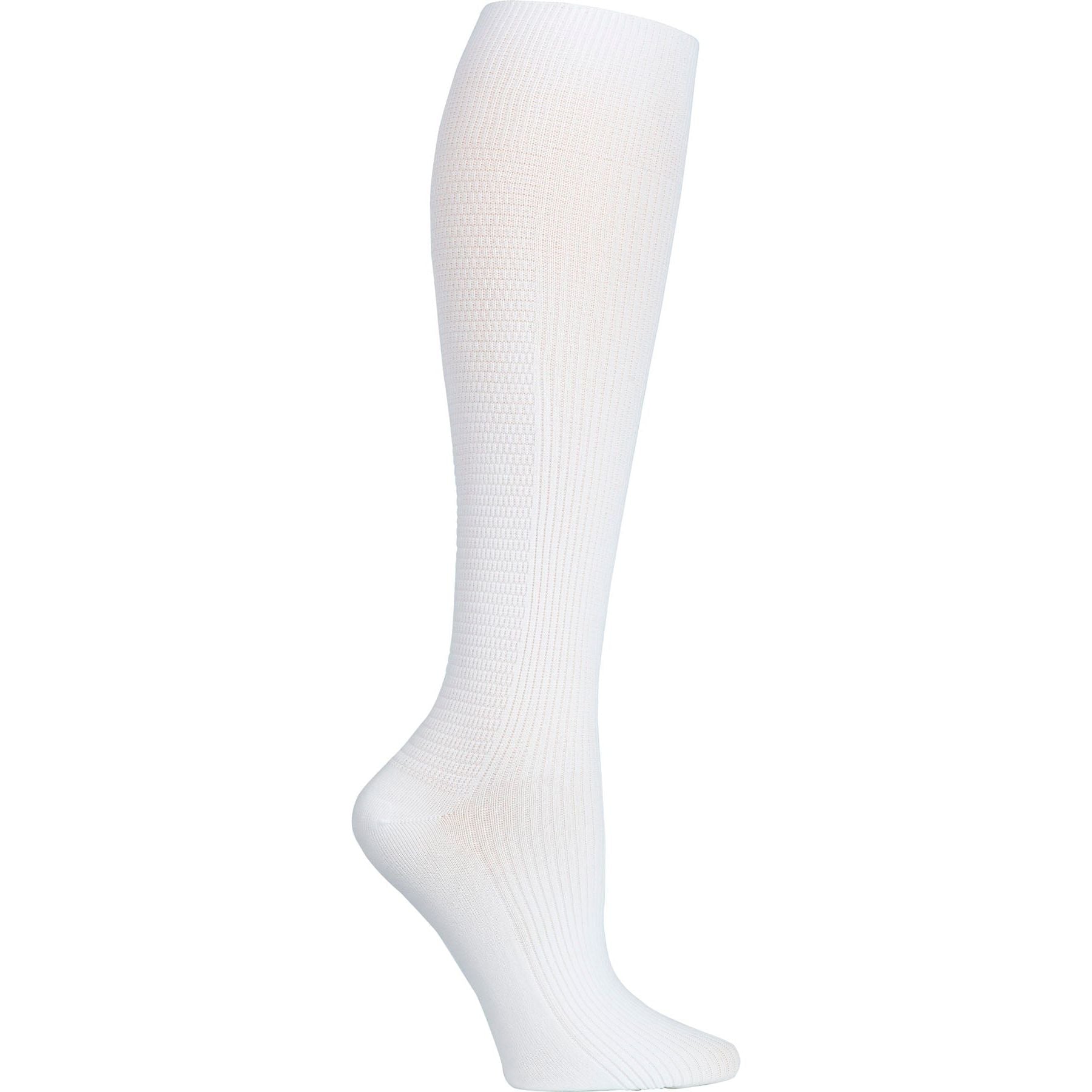 Cherokee offers gradient compression in a sock for men and women, with 3D Lycra for a more luxurious feel. Knee-high 1/4 pair pack. 8-12 mmHg compression. 90% textured nylon, 10% 3D Lycra. One size fits shoe size 6-11. Features: Gradient compression for additional comfort. Non-binding top band. 3D Lycra for a soft, smooth, lightweight feel. Made in USA.