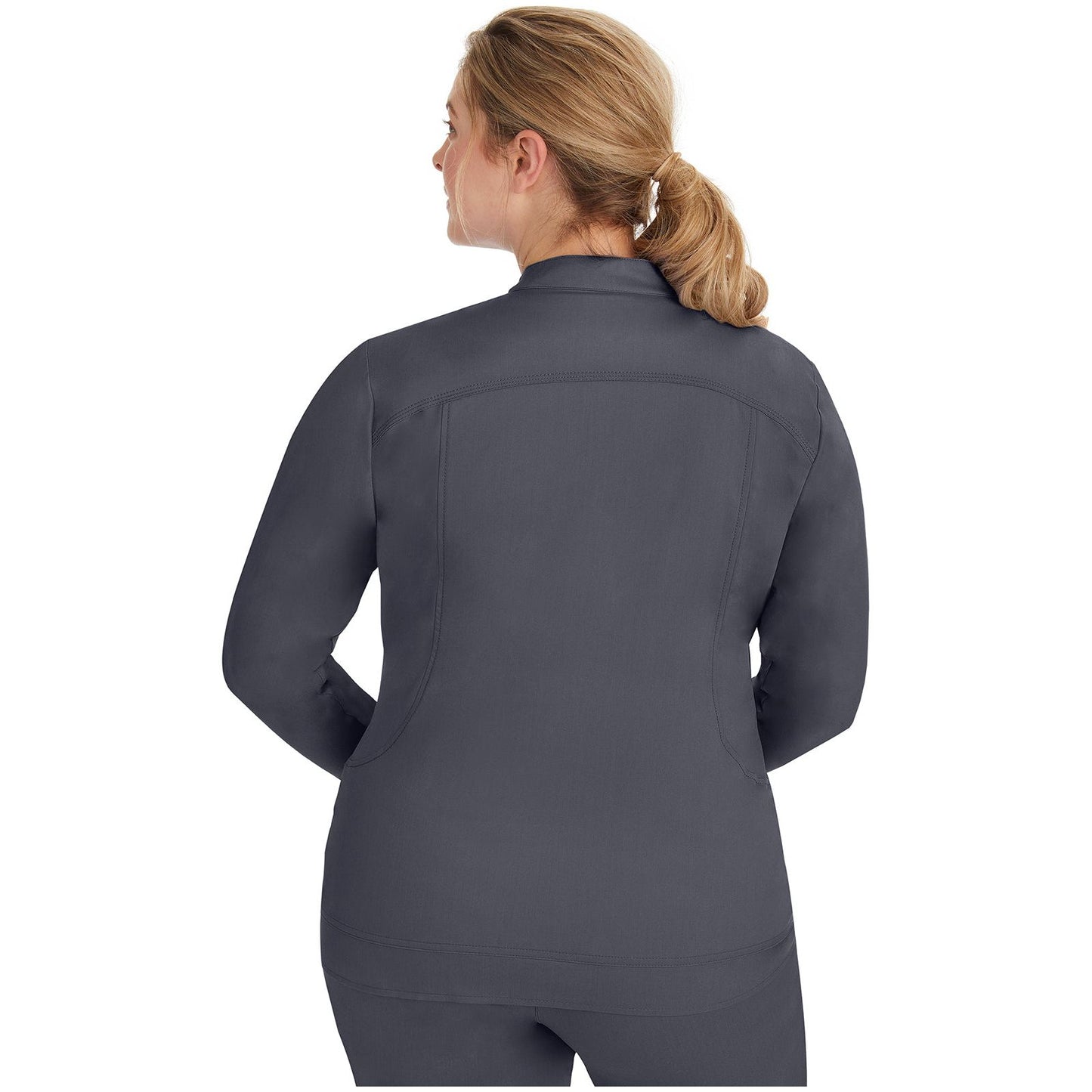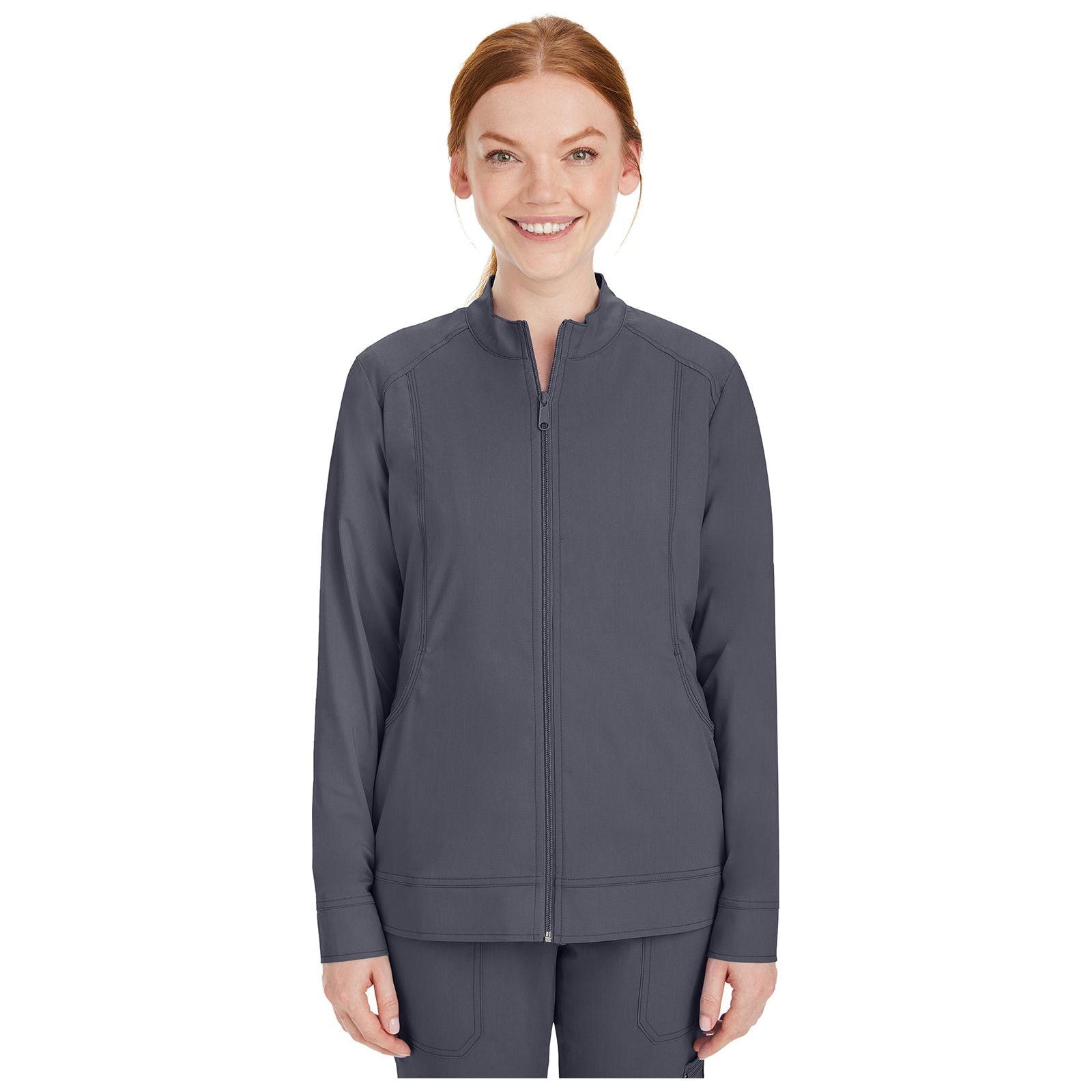 This zip-up jacket has a stand collar, soft knit cuffs, and princess panels that round into big kangaroo pockets. | DAKOTA JACKET - POLY / RAYON / SPANDEX L/SLV JKET W/MANDARIN C