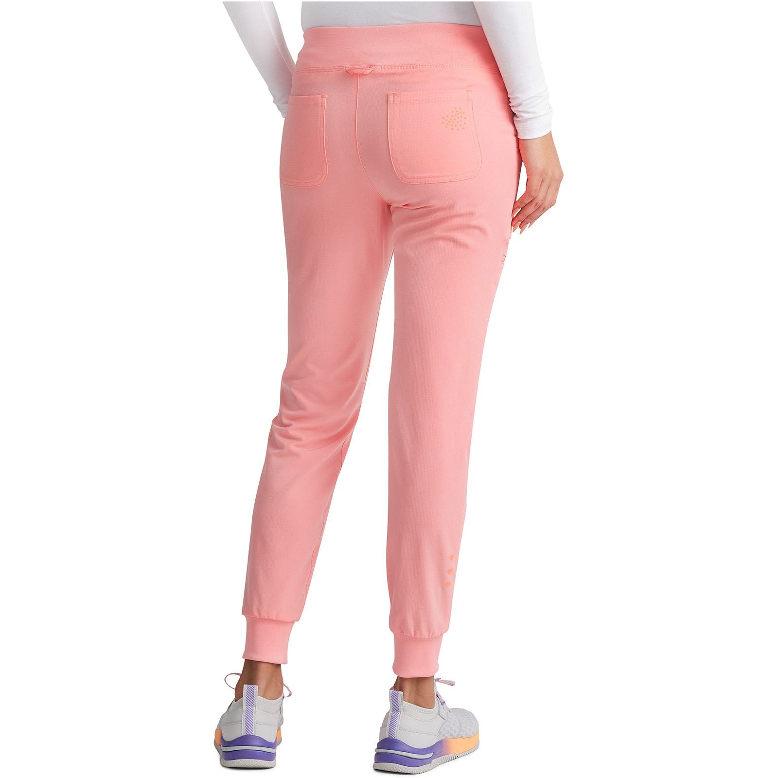 A Contemporary fit, low rise, tapered leg pant features a functional drawstring; all-around elastic waistband and leg openings made of rib knit; and signature triple-heart and dotted-heart heat transfers. Also featured are front rounded pockets with a pen slot, a zip-closure roomy cell phone pocket, rounded back patch pockets and a locker loop at the back waist. Inseam: 29".