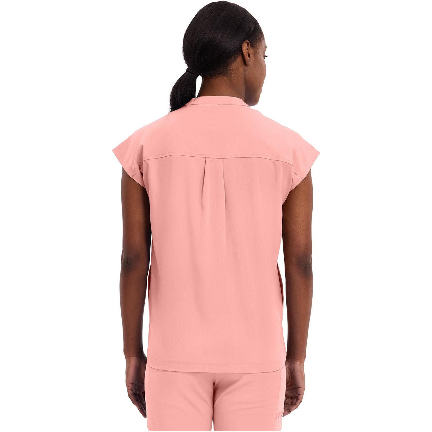 Oversized comfy Mandarin Collar Boxy top features collared neckline with snap placket, dolman sleeves ,rounded hem & back yoke box pleat detail add to this tops charm. | JOURNEY TOP