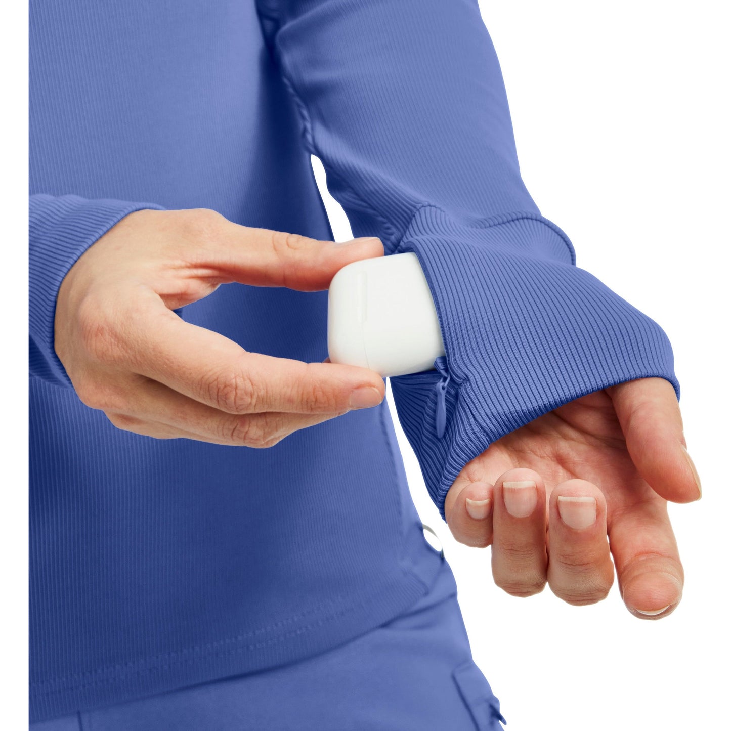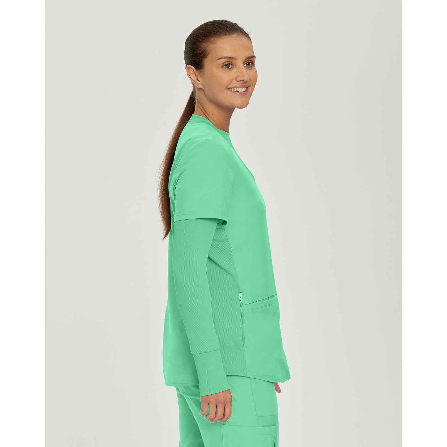 This contemporary layering underscrub tee is made with figure flattering rib knit with wrap-around side seams and a zipper pocket at the left cuff to keep your personal essentials safe. This long-sleeve tee is the perfect way to add warmth to your wardrobe when you're working in cold environments.