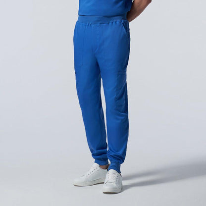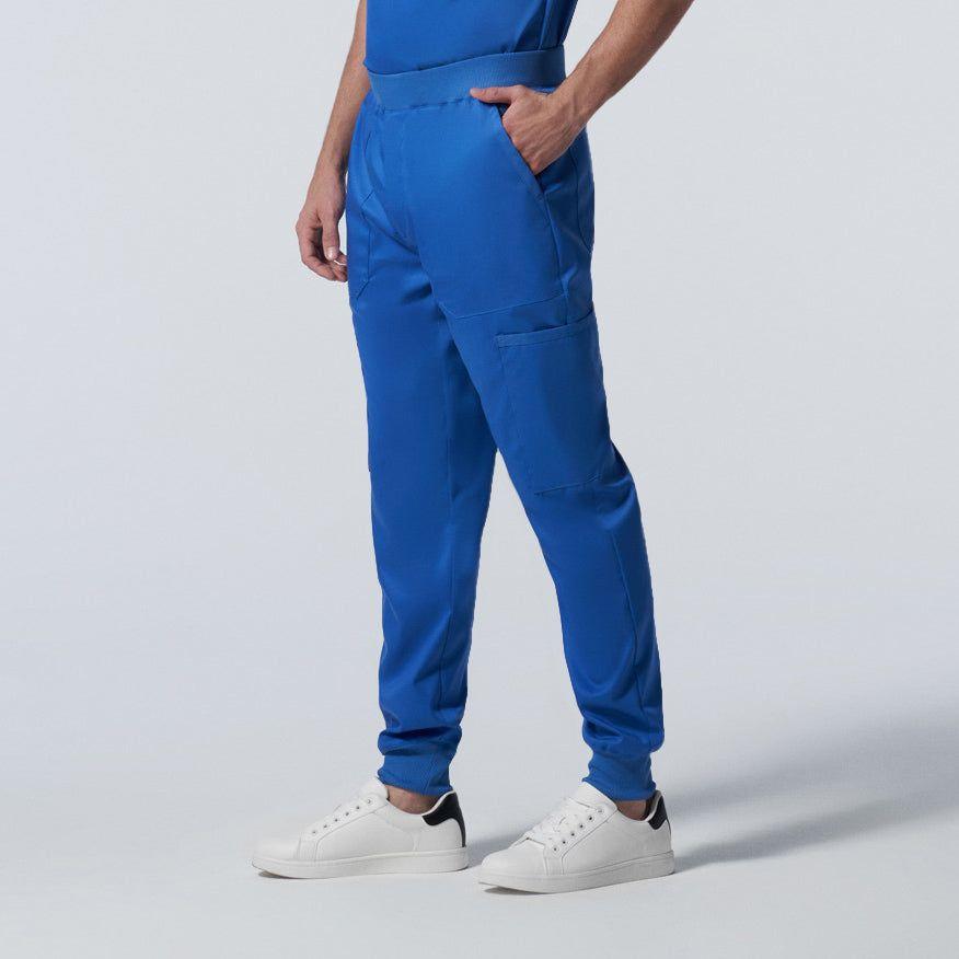 Men's Fit, zip fly jogger has a stretchy rib knit waistband with an internal drawstring. Rib knit bottom cuffs, 3 cargo pockets, 2 back pockets and 2 front pockets with 1 bungee loop to put your ID badge giving an easy access to instruments and accessories.
