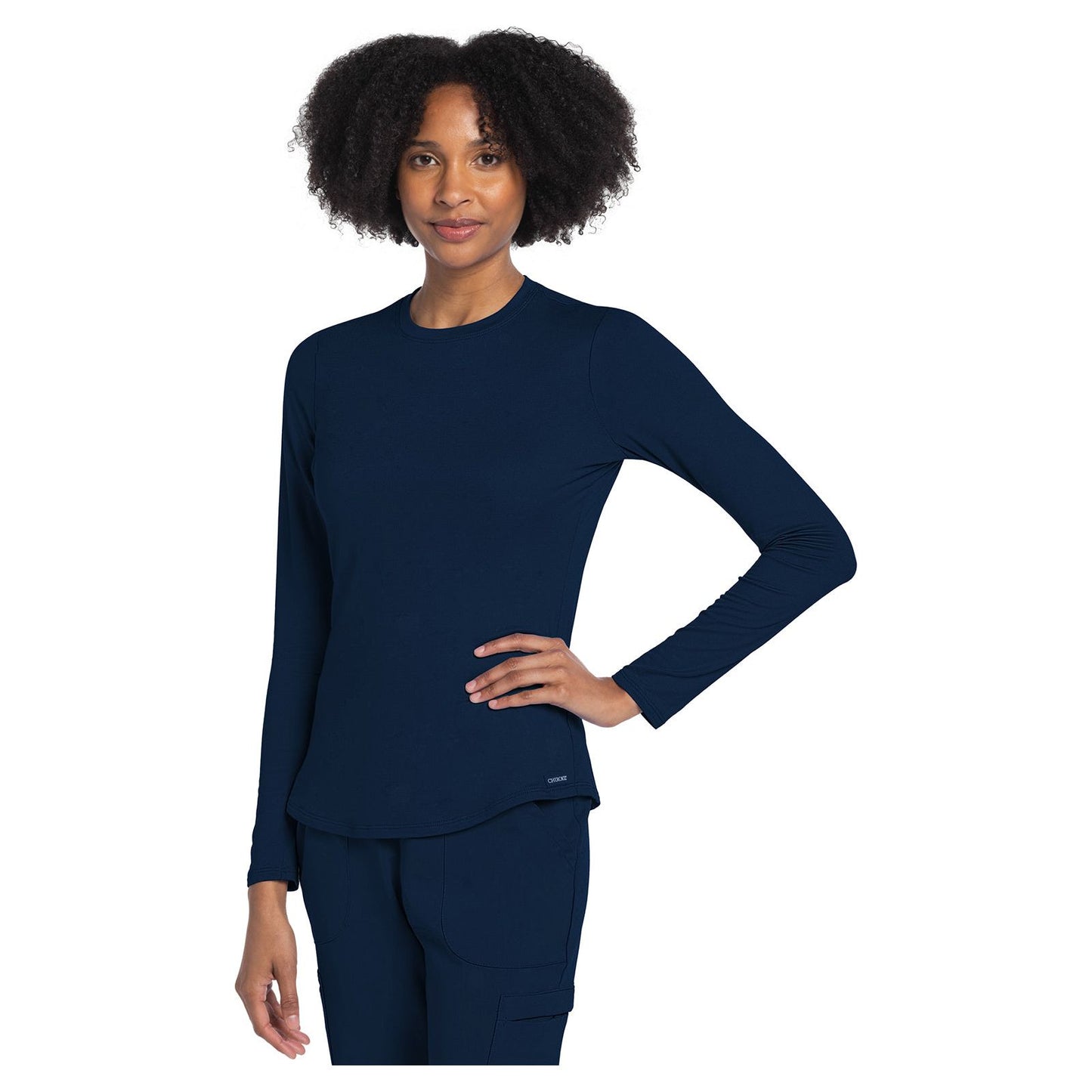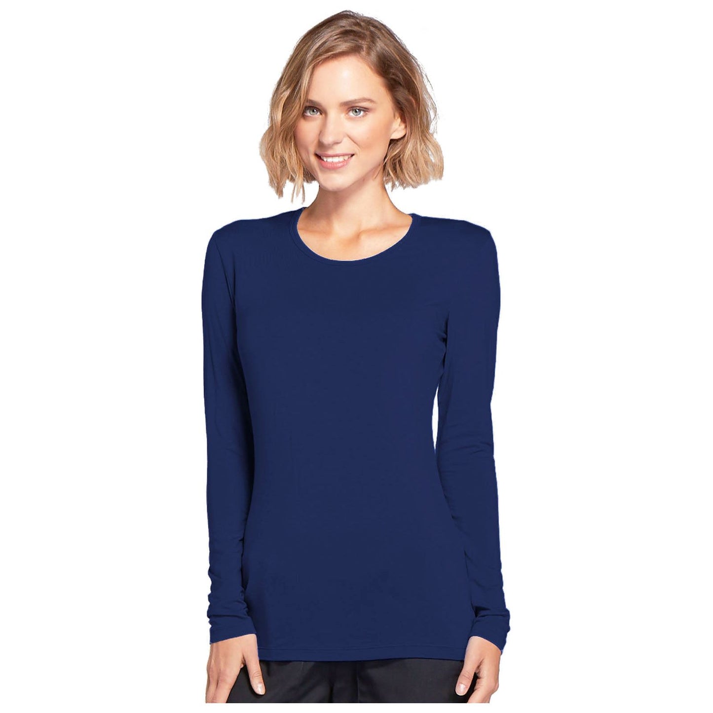 A Modern Classic fit, comfy long sleeve crew neck underscrub knit tee looks great as a layering piece or worn on its own. Center back length: 26"