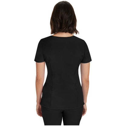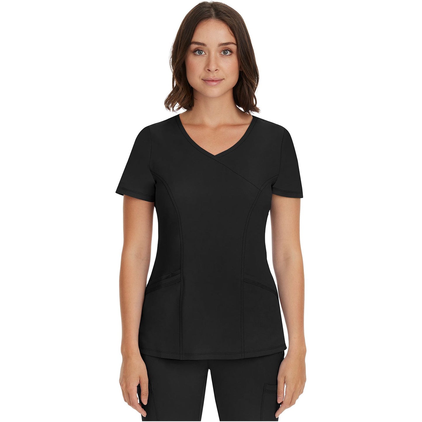 MADISON TOP-Faux Wrap Neck Top with 3 Pockets & 1 Media Pocket & Front & Back Princess Seam | This scrub top features a fashionable mock-wrap style and princess seams down the front and back.