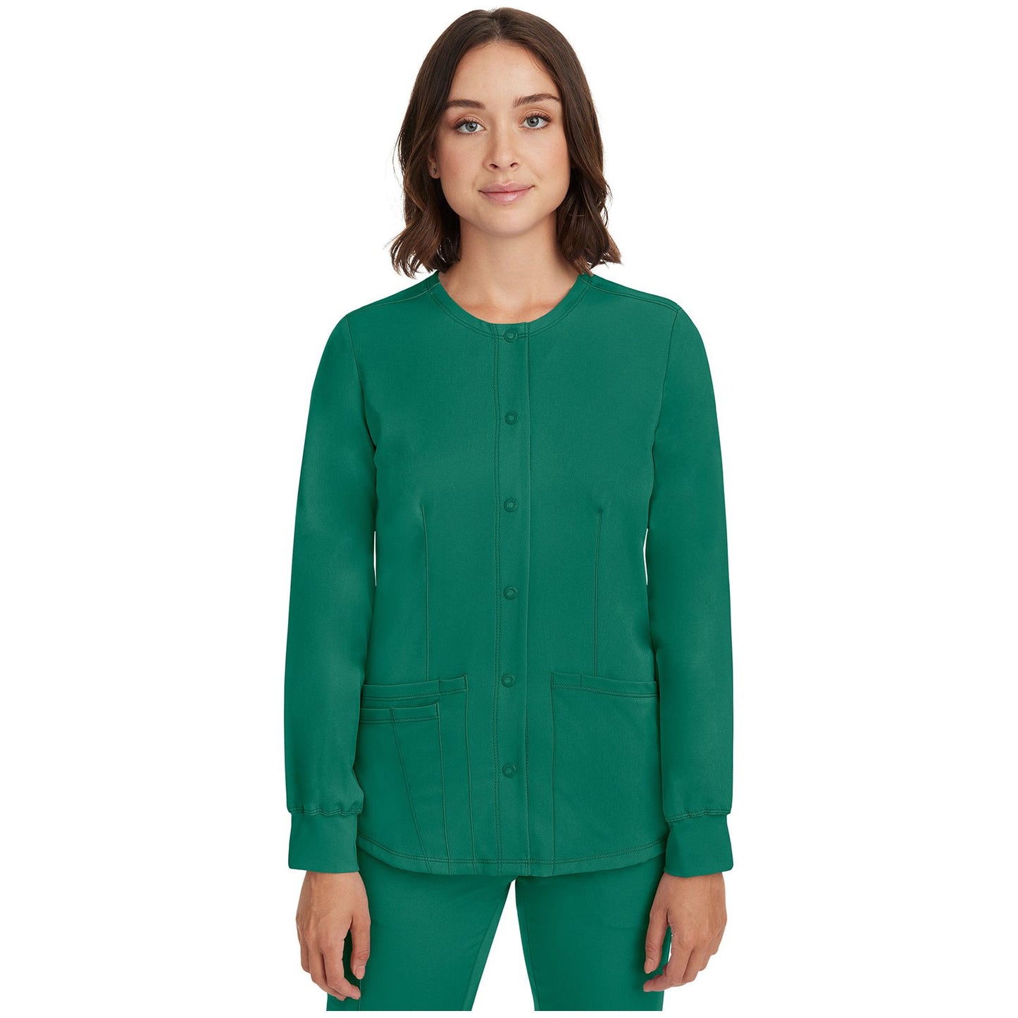 MEGAN JACKET-Round Neck Snap Button Front Jacket with 4 Pockets & 1 Media Pocket | The Megan Jacket features four pockets, including a mesh cell phone pocket, a scissor pocket, and dedicated space for your pen.