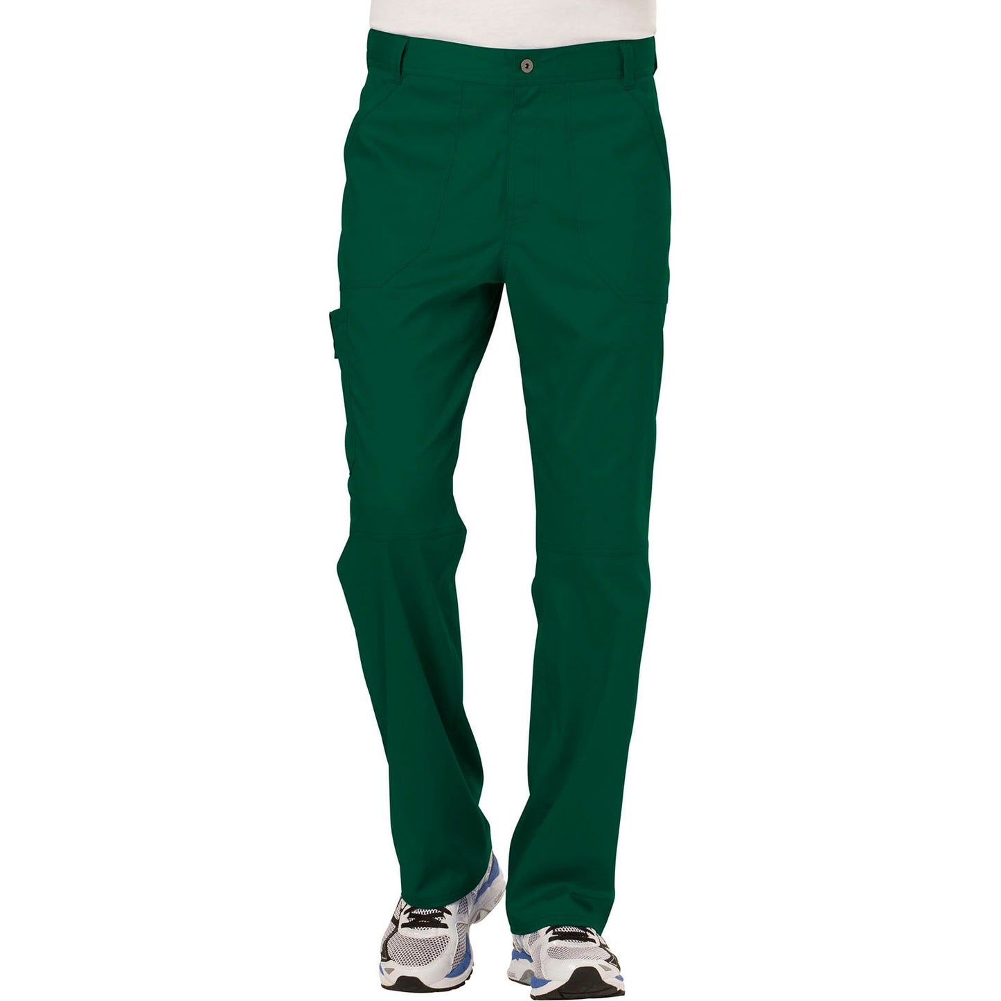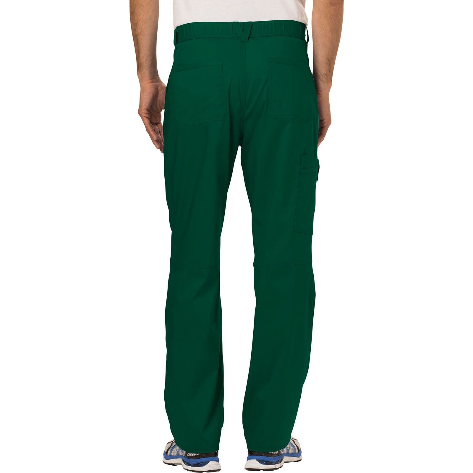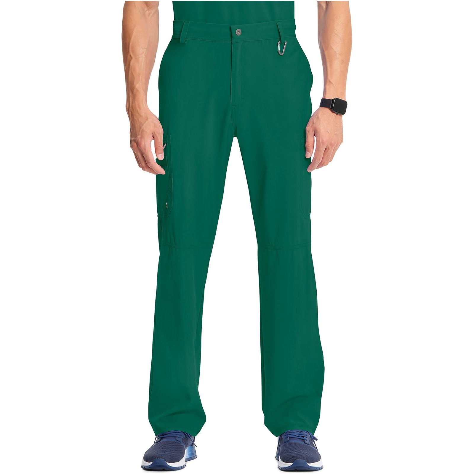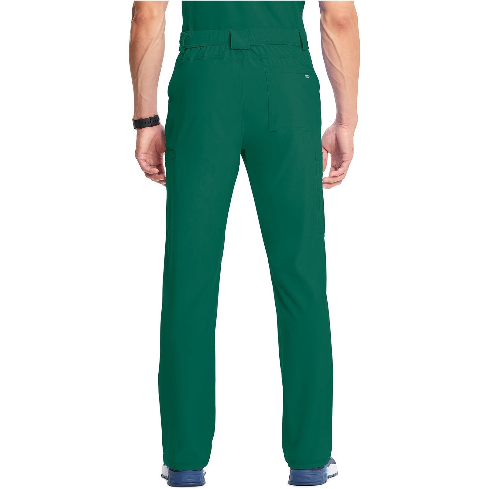 A Men's Modern fit tapered leg pant features an inside functional drawstring, back elastic waistband with rib-knit, five belt loops, a zip fly with button closure and a hidden inseam gusset for extra ease. Also featured are two front angled pockets, a right double cargo pocket with bungee loop and grommet, left welt cargo pocket, back patch pocket and knee seams. Inseam: 32"
