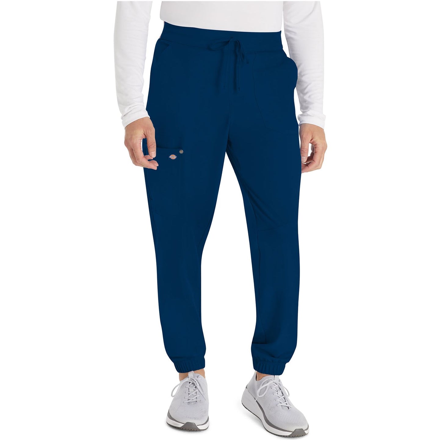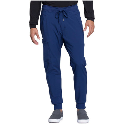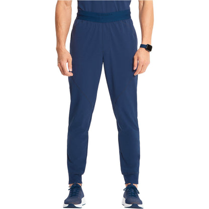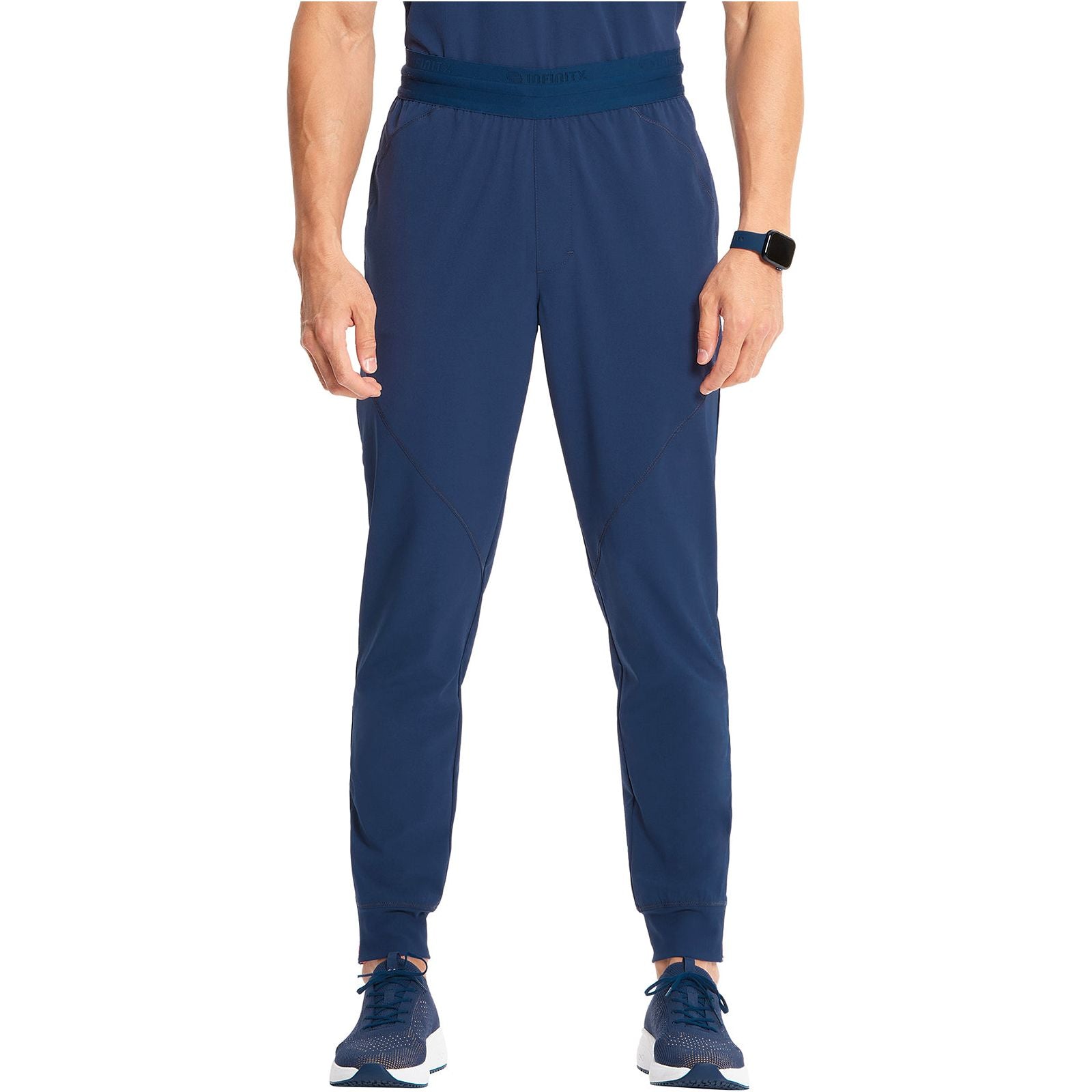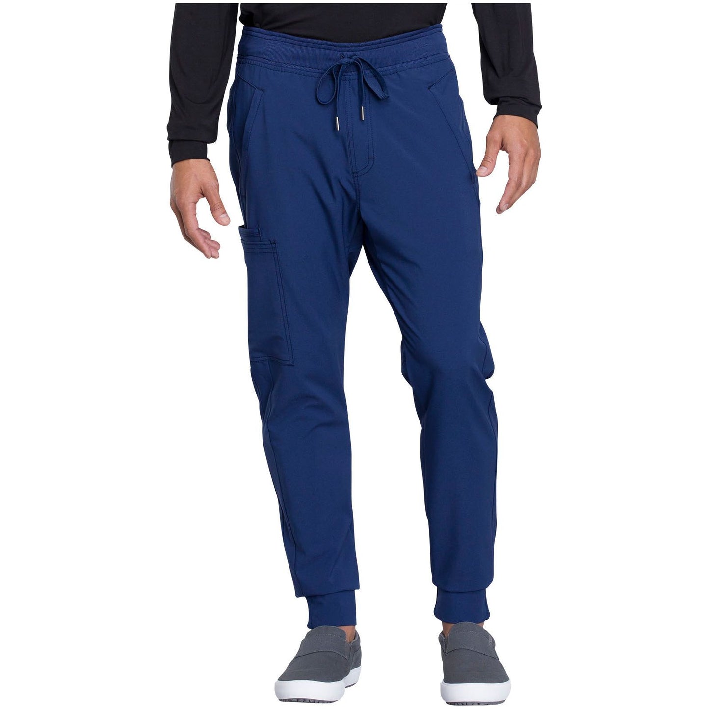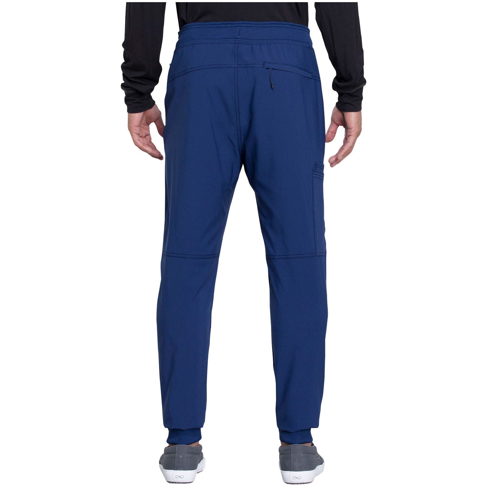 Stylish and super comfortable, this Men's Modern fit jogger features a mid rise, five pocket styling including three zip pockets to keep your items secure plus a cargo pocket with cell phone pocket, and rib knit cuff at back hem. As an added detail, the waistband offers a fun pop of color inside while remaining soft and comfortable on the skin. These joggers are a great piece that can transition from work to everyday life. Leg opening: 10 1/2". Inseam: 31". The comfortable stretch poplin fabric and super stretchy rib knit is the perfect combo for healthcare professionals.