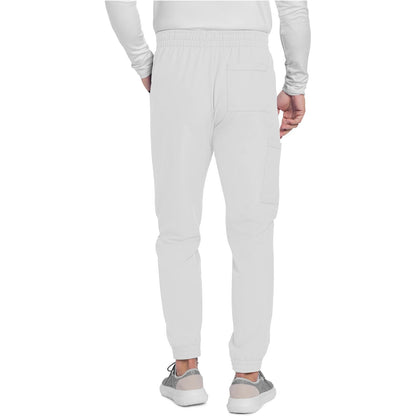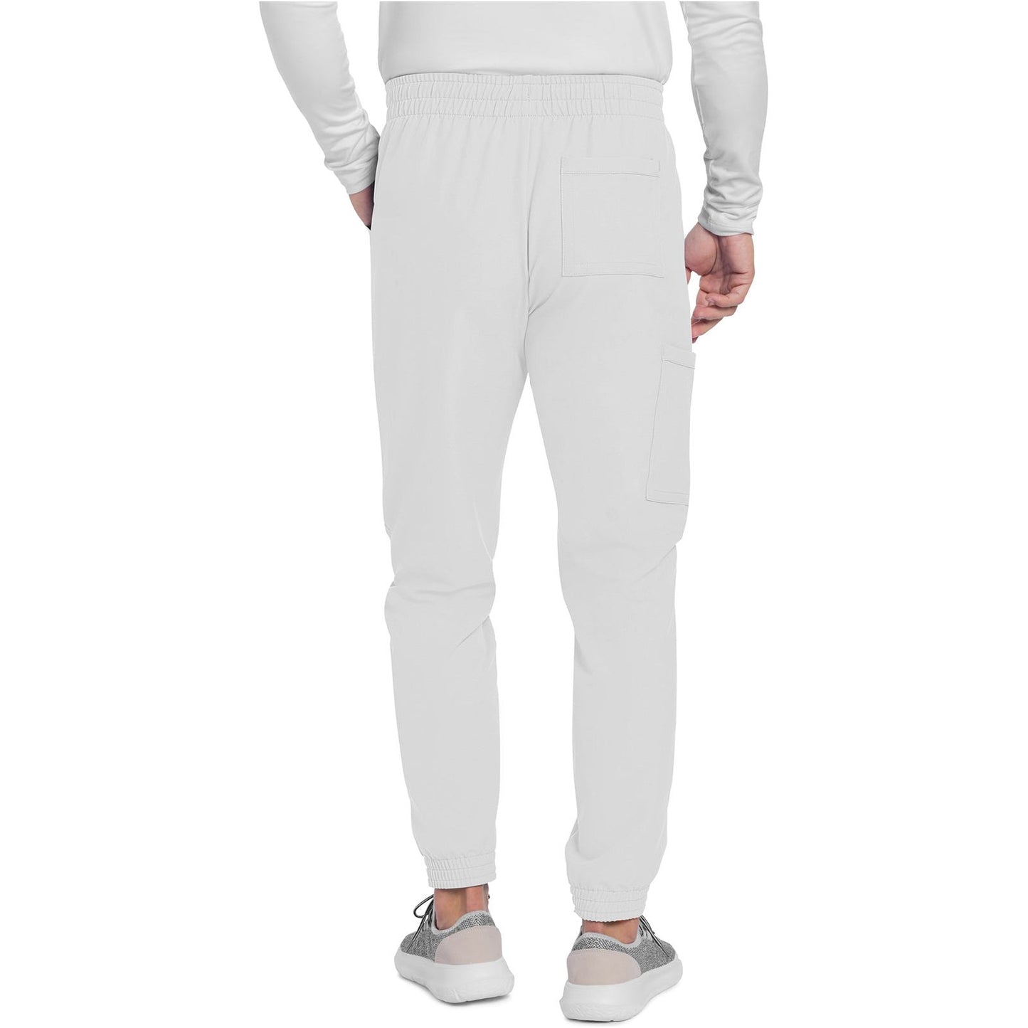 This Men's fit jogger offers style and function. The mid rise pull-on elasticized waistband has an interior drawstring for adjustability. There are a total of four pockets: two front pockets with slanted entry, one cargo pocket with pen/instrument slot on the wearer's right side, and one back patch pocket. The cargo pocket and back pocket have reverse hem trim for added detailing. This Men's scrub jogger is finished with elasticized cuffs and decorative tonal topstitching. Tapered jogger leg, 11 1/2" opening. Inseam: 30 1/2"