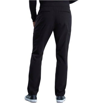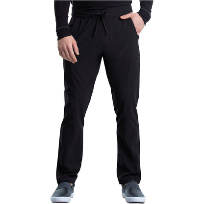 This Men's Modern fit pant has a knit waistband backed with logo elastic and drawstring. Other features include mock fly plus reflective piping on the side seaming ending at the cargo pockets. There are seven pockets in total: two front pockets, two half welt cargo pockets, one hidden cellphone pocket on the wearer's right cargo pocket, and two zip back patch pockets. Interior flat elastic at the leg hem provides versatility. Tapered leg, 15" opening. Inseam: 34 1/2"