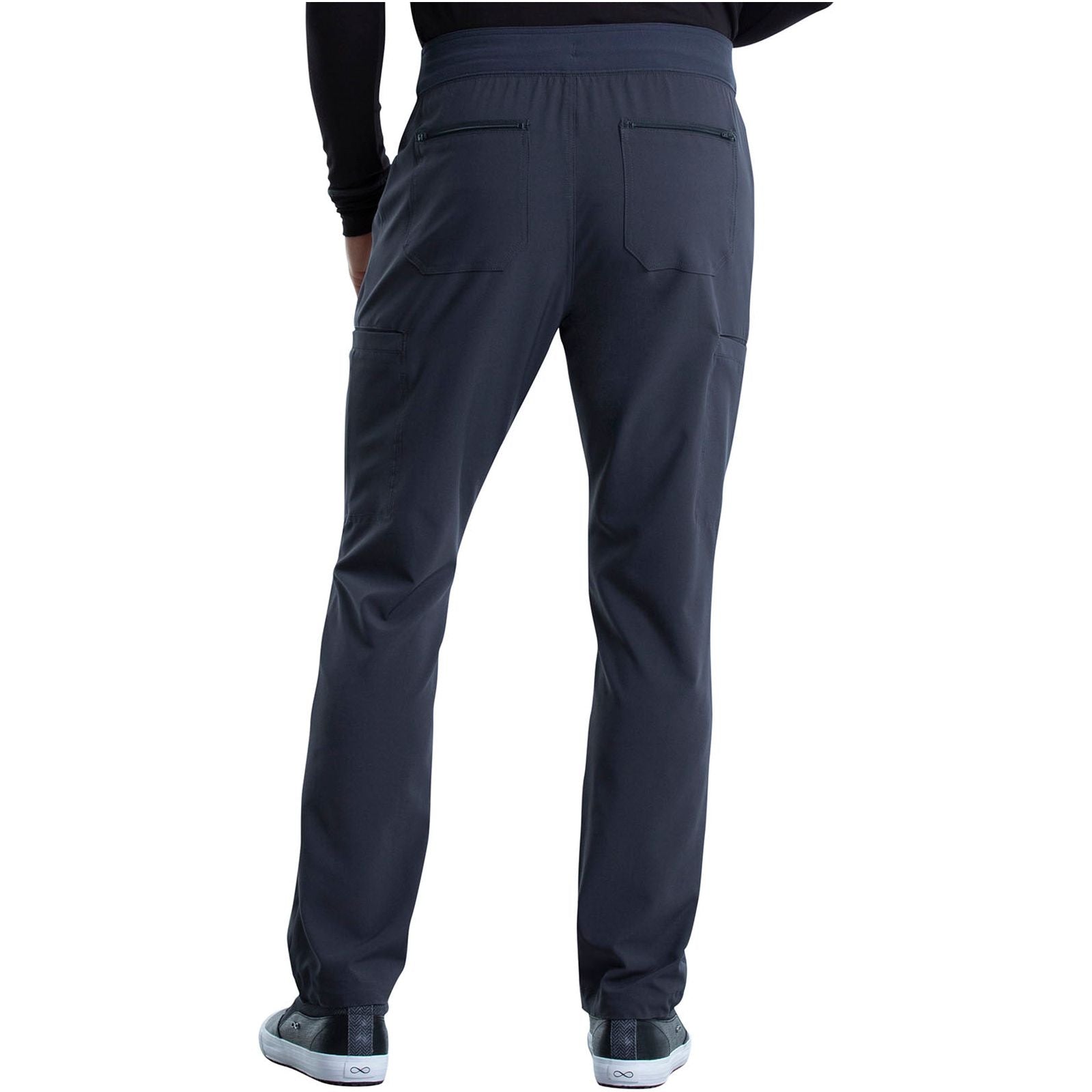 This Men's Modern fit pant has a knit waistband backed with logo elastic and drawstring. Other features include mock fly plus reflective piping on the side seaming ending at the cargo pockets. There are seven pockets in total: two front pockets, two half welt cargo pockets, one hidden cellphone pocket on the wearer's right cargo pocket, and two zip back patch pockets. Interior flat elastic at the leg hem provides versatility. Tapered leg, 15" opening. Inseam: 31 1/2"