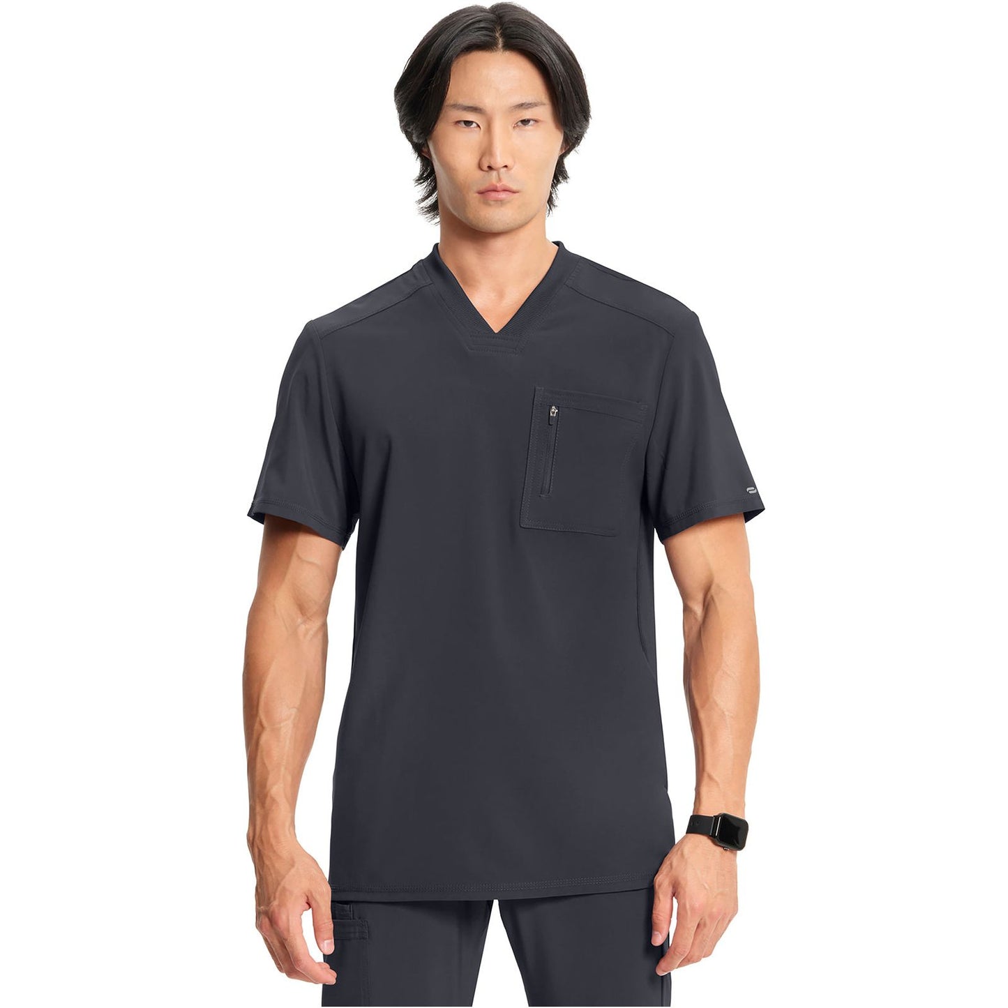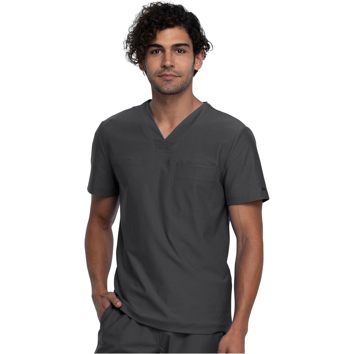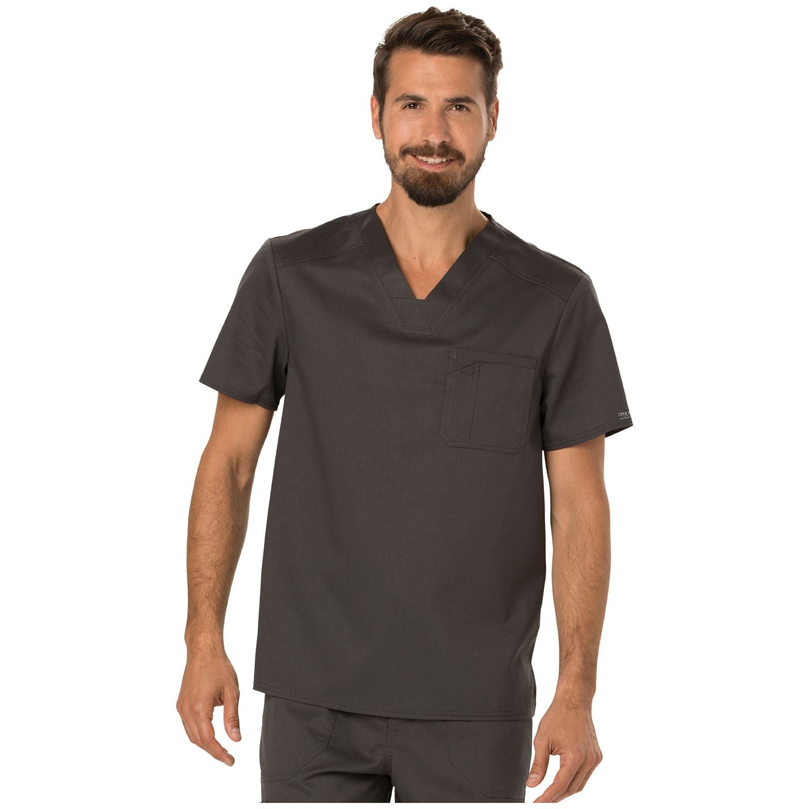 Men's Traditional fit V-neck top features double chest pocket with pencil stitch, back yoke, double needle topstitching and side vents. This style looks great tucked in or untucked. Center back length: 29"