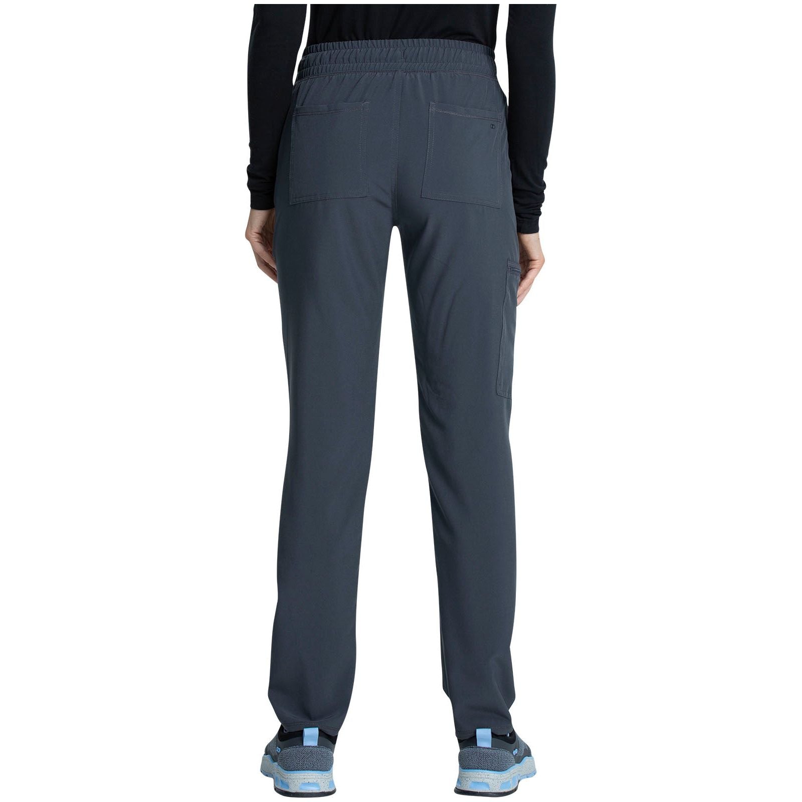 This mid rise drawstring pant has interior elastic and drawstring waistband. There are five pockets: two front pockets, one zip cargo pocket and two back patch pockets. A forward wrapping side seam completes the look. Contemporary fit. Inseam: 29"