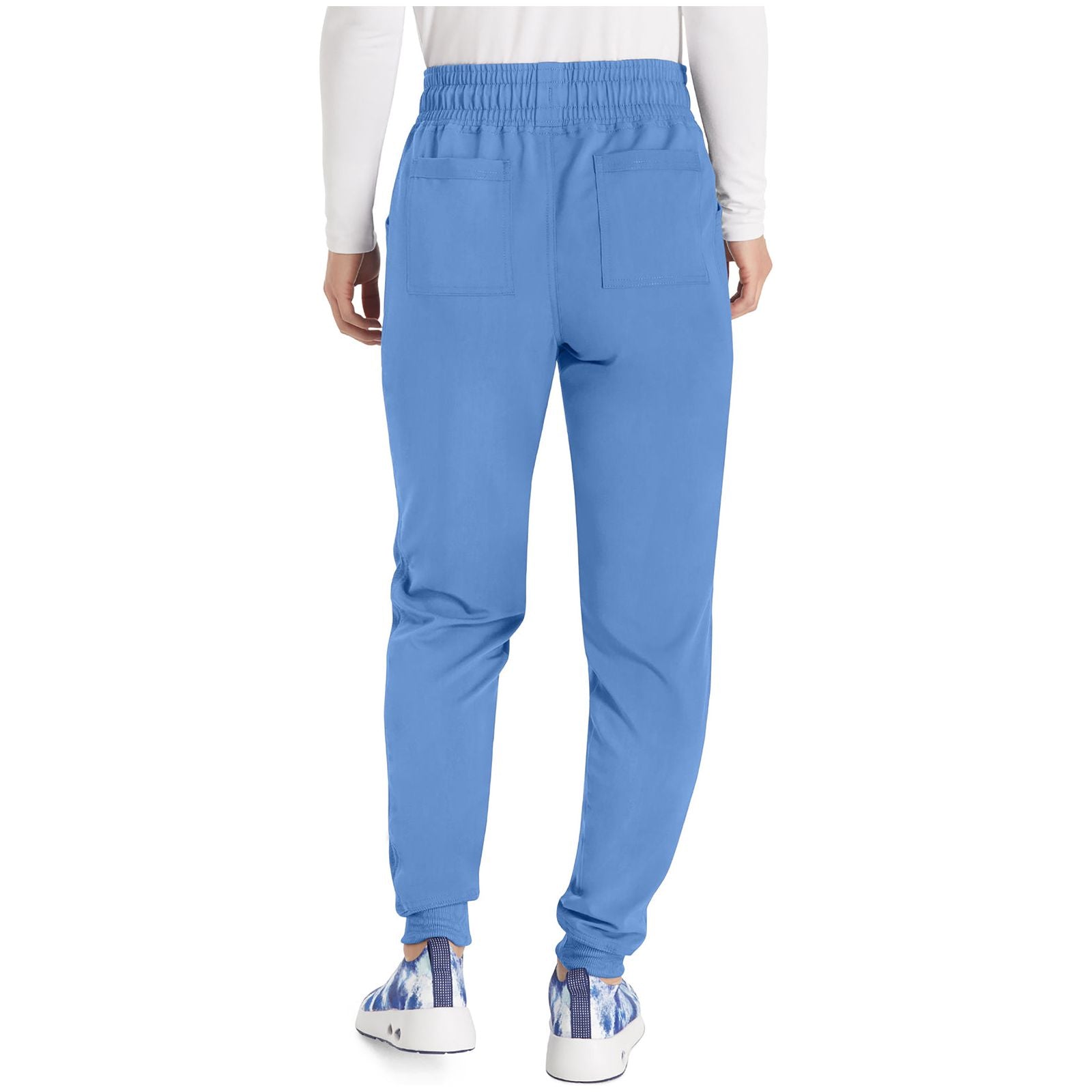 This Contemporary fit, mid rise jogger features an enclosed elastic waistband and interior drawstring. There are front leg seams for a lengthening effect plus back side panels in comfort rib-knit. Five pockets offer plenty of storage: two roomy front pockets, a security zip pocket with an elastic bungee on the wearer's right and two back pockets. Back pockets feature reverse hem trim for extra design points. Rib-knit cuffs complete the look. Tapered leg, 8 1/2" opening. Inseam: 29"