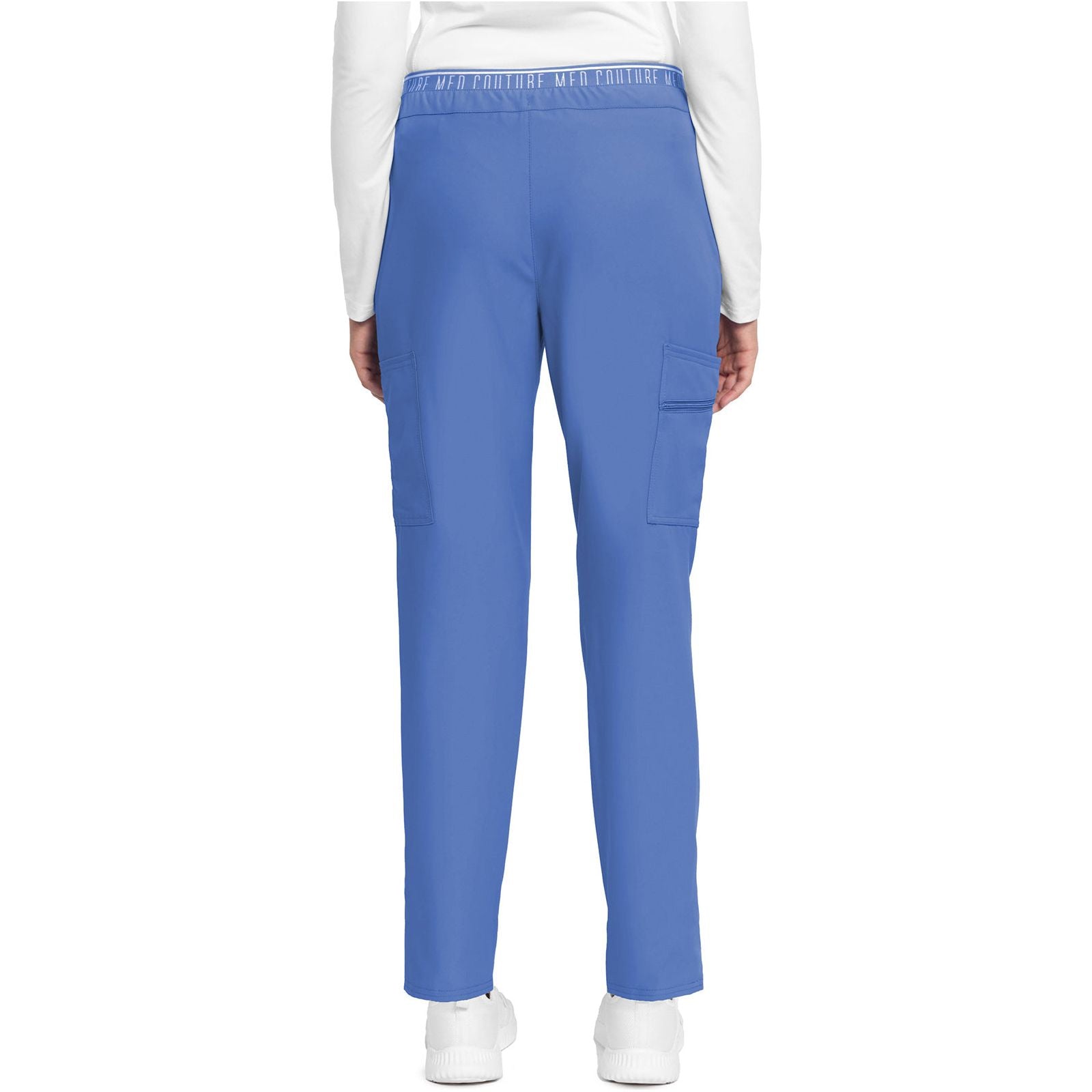 This Missy fit mid rise pull-on ankle pant is designed to skim the ankle bone. It features a peek-a-boo logo elastic waistband with an interior drawstring for style, security, and an adjustable fit. There are five pockets for organized storage: two front scoop pockets, one cargo pocket on the wearer's left side, one double cargo pocket with pen slot and additional zipper pocket on the wearer's right side. Tapered leg, 12 1/2" opening. Inseam: 29 1/2"