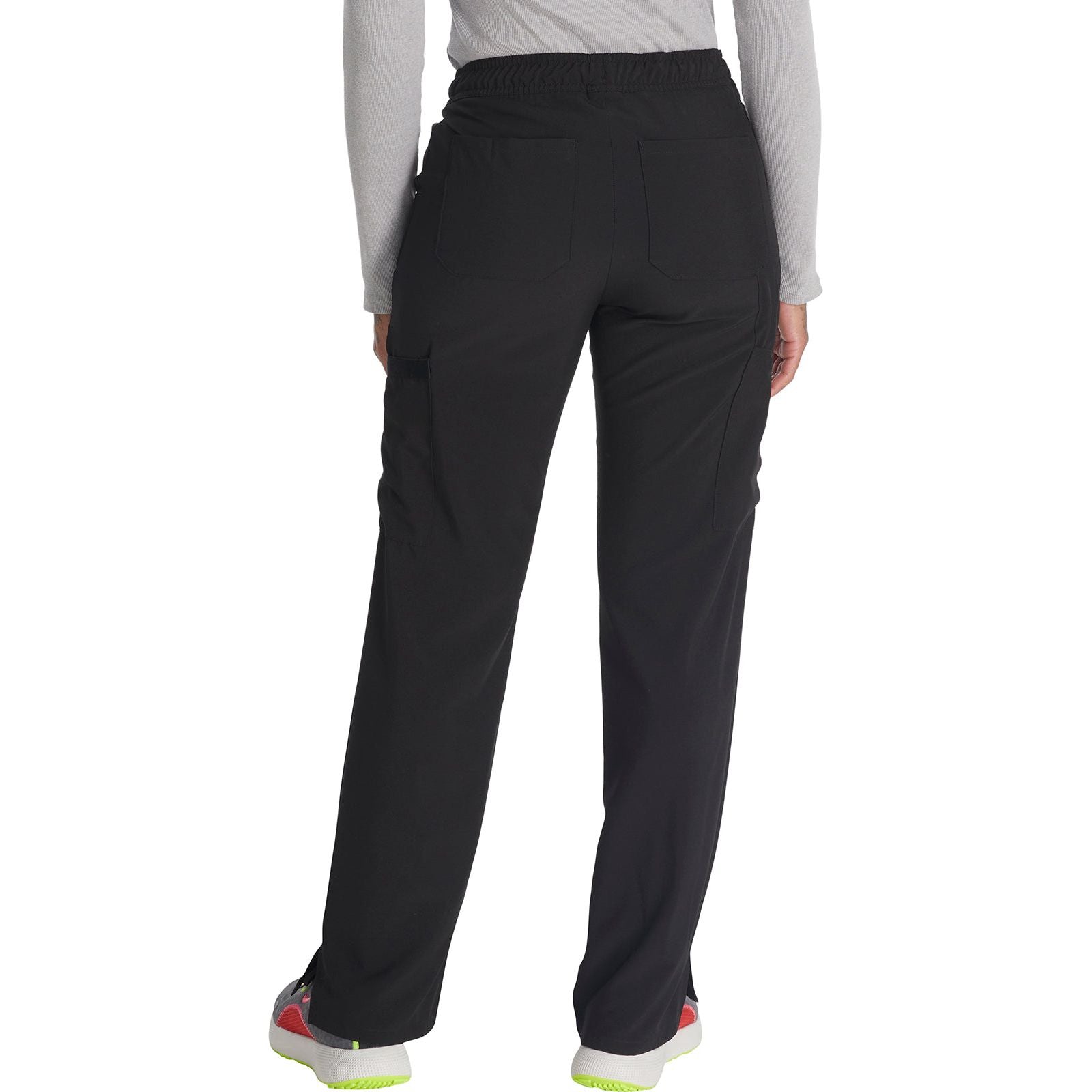 A Contemporary fit, mid rise, straight leg pant features an all around elastic waistband with a functional drawstring and seven pockets. Two front pockets, two cargo pockets, two back pockets, and a scissor pocket. Also featured is a signature tonal woven label, a utility twill tape and side vents. Leg opening: 17". Inseam: 30 1/2"