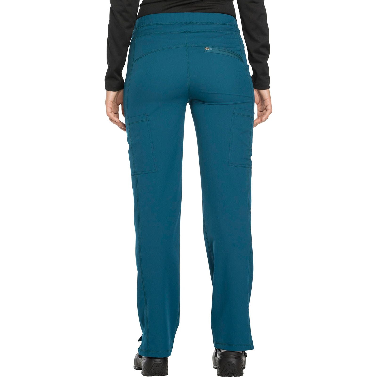 A Contemporary fit, mid rise, straight leg pant features an all around elastic waistband with a functional drawstring and seven pockets. Two front pockets, two cargo pockets, two back pockets, and a scissor pocket. Also featured is a signature tonal woven label, a utility twill tape and side vents. Leg opening: 17". Inseam: 30 1/2"