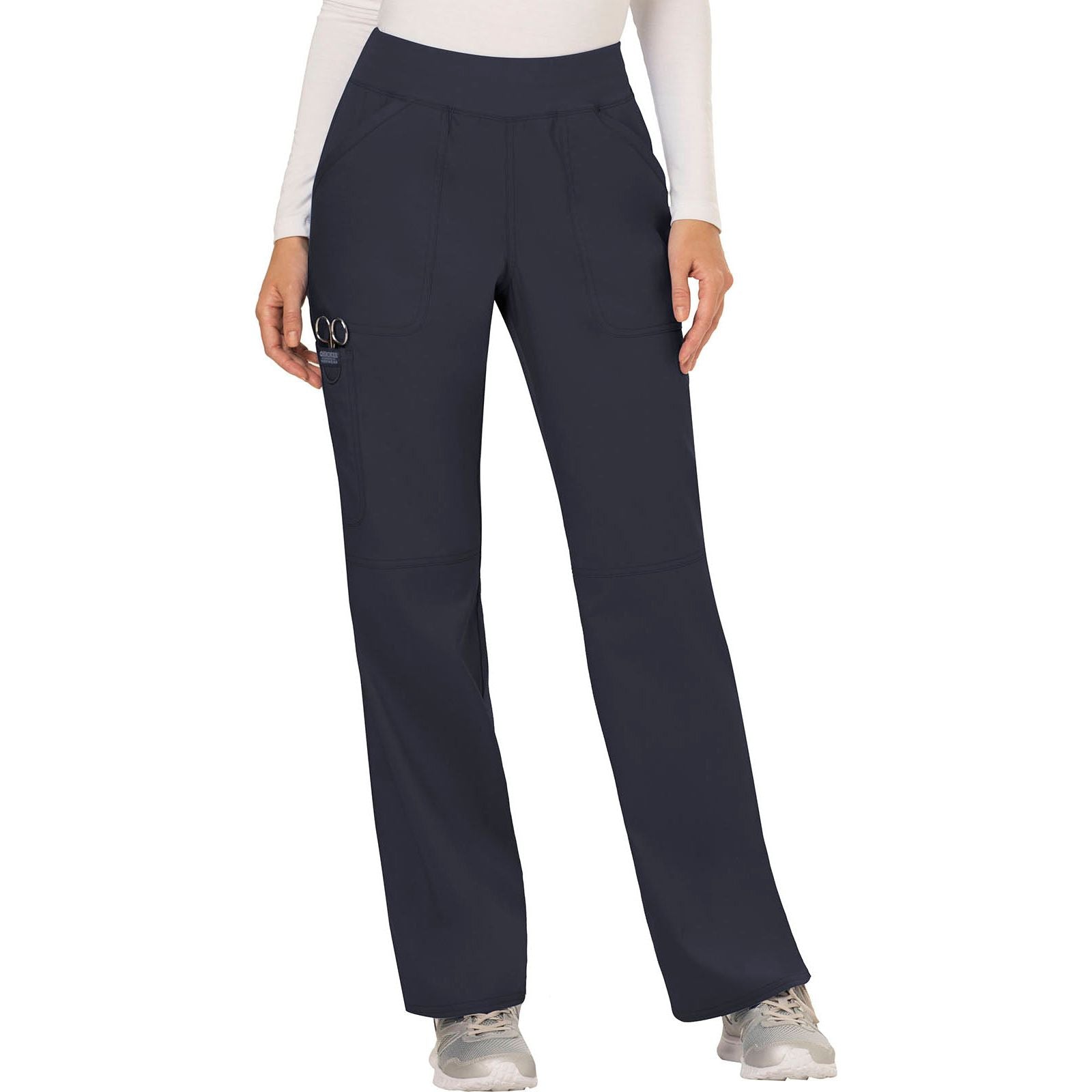 A Contemporary fit, mid rise, straight leg pant features a comfort-fit knit waistband reinforced with inside elastic for extra support. Also featured are front round pockets with signature logo rivets, logo tape with plastic key clasp (inside left pocket), two welt cargo pockets, a hidden waistband pocket, coin pocket and flat bungee cord at each leg hem for adjustability. Inseam: 31". This durable crosshatch stretch dobby fabric combined with soft knit panels provide maximum comfort, movement and flexibility.