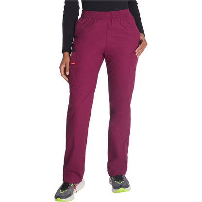 A Modern Classic fit, natural rise, tapered leg, pull-on pant features an all around elastic waistband with a Dickies logo twill tape on the inside back waistband and has an instrument loop on the right cargo pocket. Also featured are front angled pockets and cargo pockets with a stretch Red knit interior pocket (White knit pocket on White). Inseam: 30 1/2".