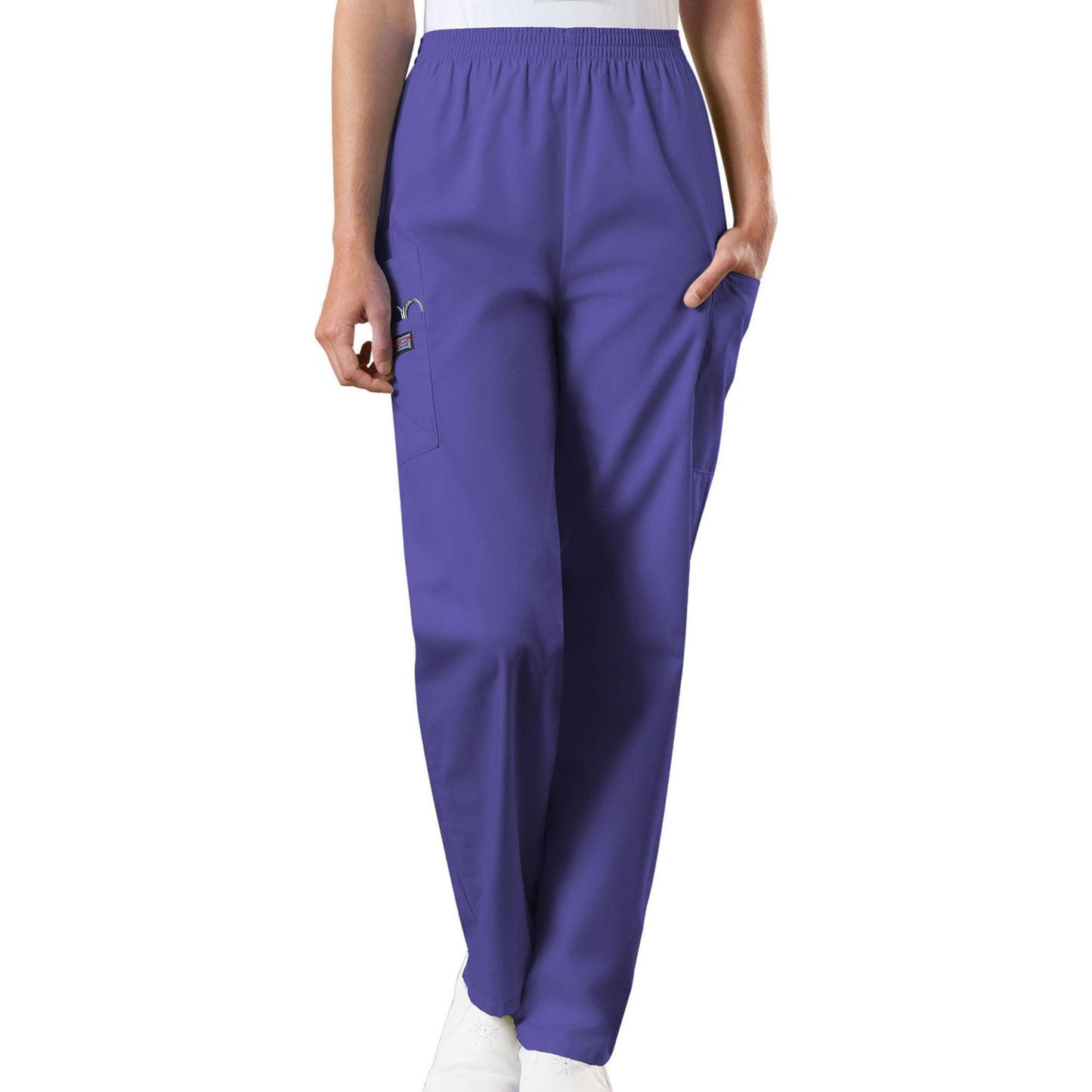 This Traditional fit, elastic waist utility pant features a natural rise and tapered leg, two cargo pockets, a cell phone pocket and an outside scissor pocket. Inseam 30".