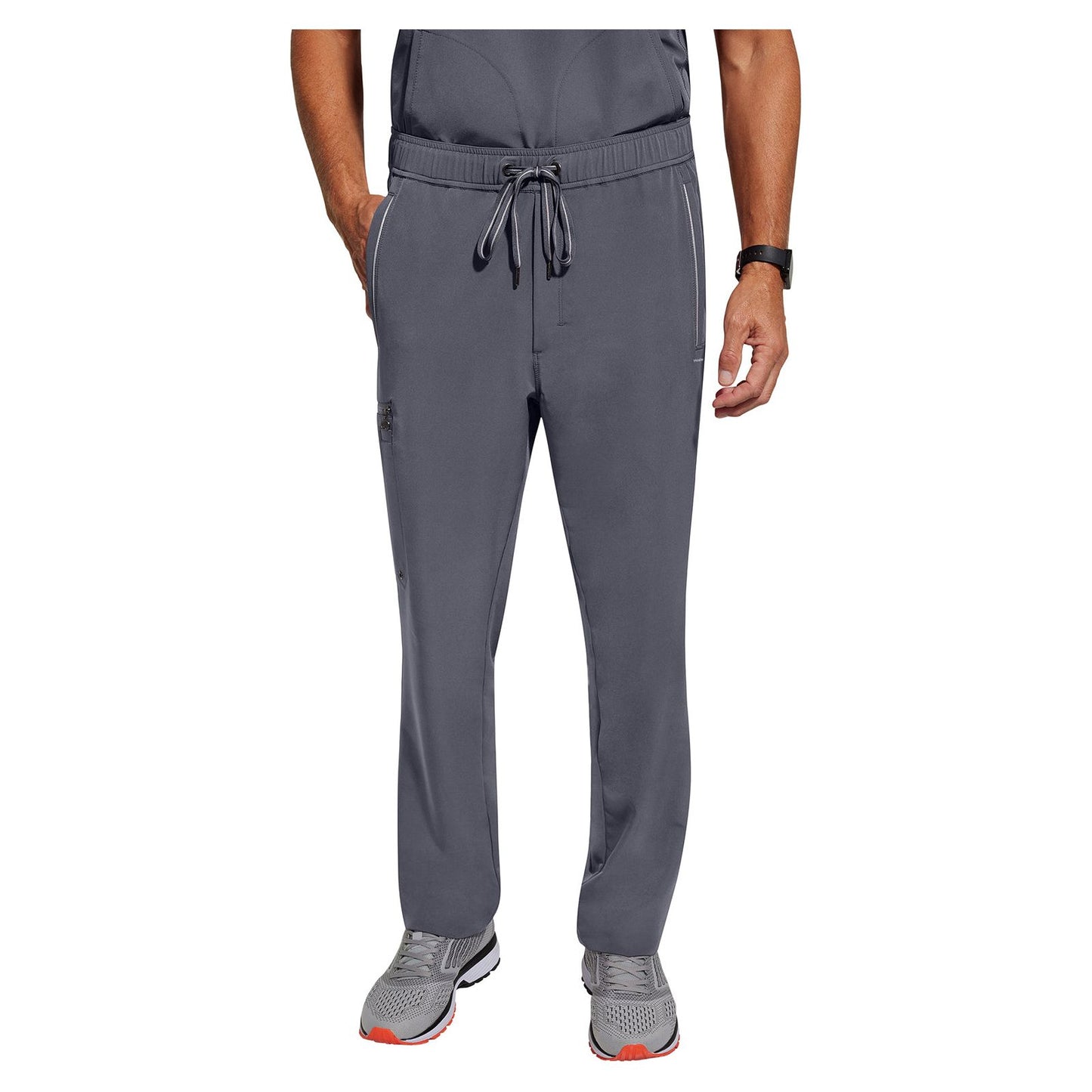 This Noah Pant offers a Modern fit with a straight leg cut and elastic drawstring waistband. This mid rise pant features back yoke detail and a zip fly front closure. There are 7 pockets for ample storage: 2 front welt pockets, 2 back welt pockets, 1 hidden mesh pocket, 1 cargo pocket with pen/instrument slot, and 1 zip cargo pocket. Leg opening: 16 1/2". Inseam: 31".