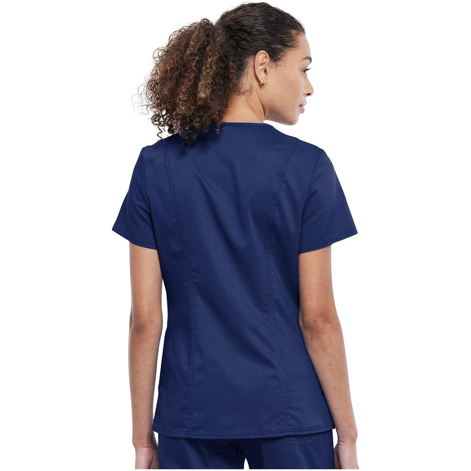 This Modern Classic fit V-neck top features a snap front closure, knit insets at neckline, front yoke seams, back princess seams and a logo label with bungee loop. There are four pockets in total: two front top entry patch pockets and two side angle entry pockets. Side vents complete the look. Center back length: 26"