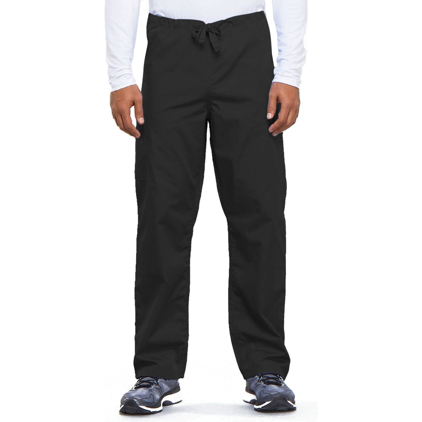 A Unisex Traditional fit cargo pant sports a natural rise and an adjustable drawstring with an elastic waist. Included are five pockets: Two front angled pockets, a right side cargo pocket with an instrument loop just above and an extra instrument/cell phone pocket. Also featured is a back pocket and back leg seam. Inseam: 31".