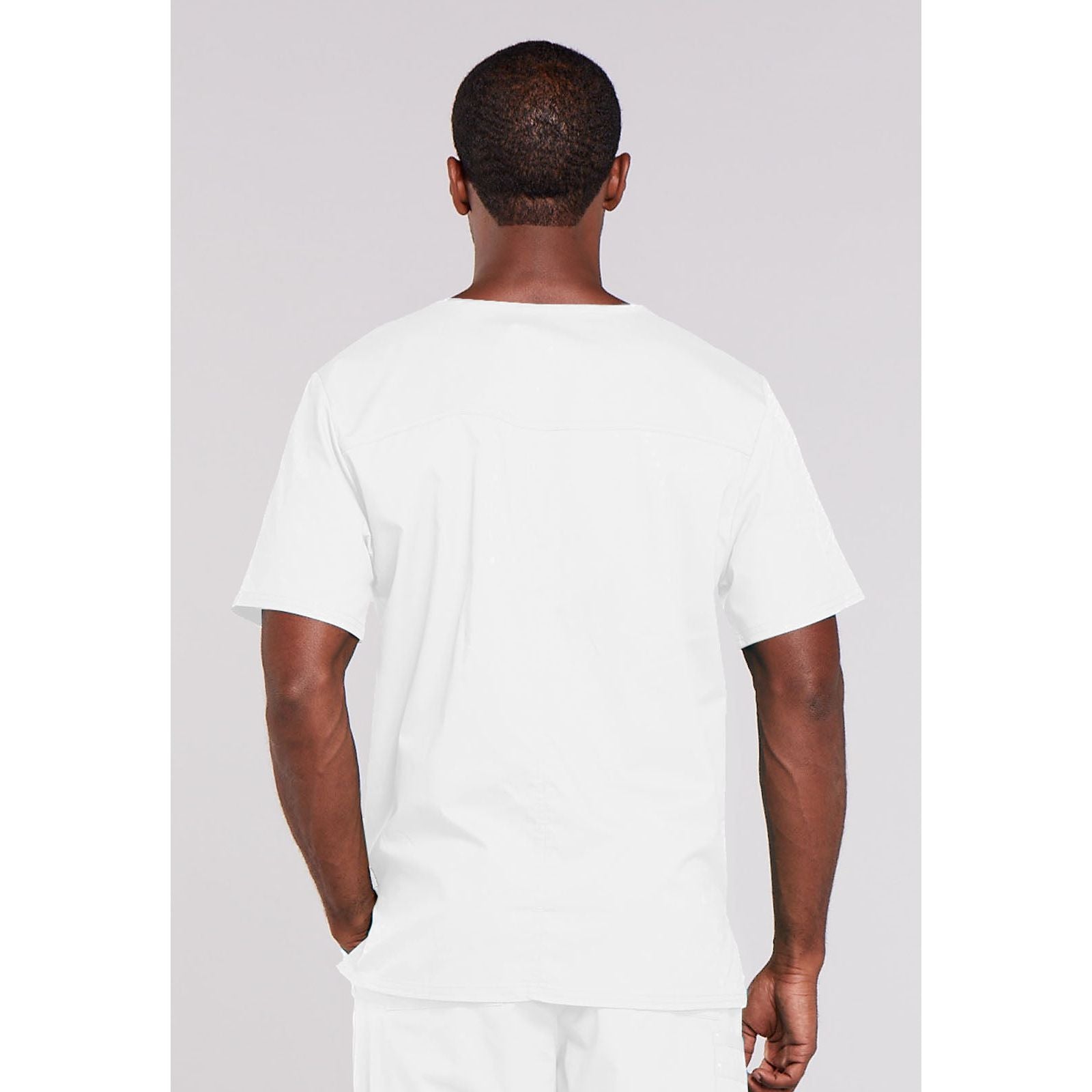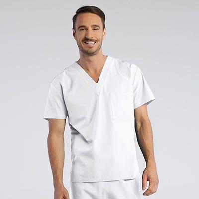 A Unisex Traditional fit V-neck features double needle stitching. The chest pocket features an instrument holder. Also included are two patch pockets, an additional instrument/cell phone pocket on right side, back yoke and side vents. Center back length: 28"