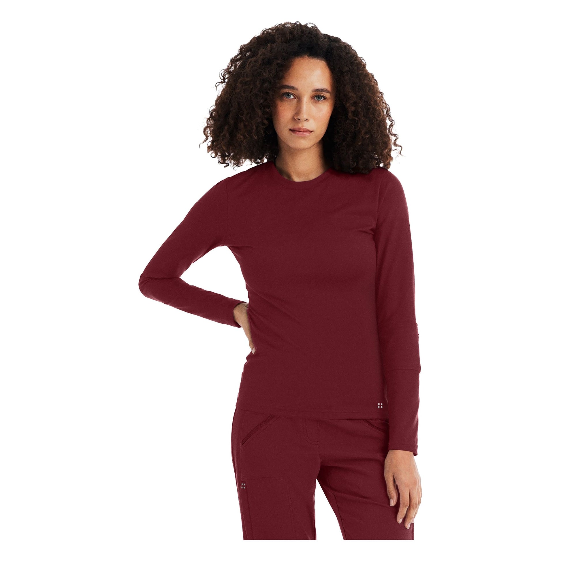 A Modern Fit, crewneck under scrub in a soft knit features a hidden zipper pocket at the forearm for easy access to any essential items. This style doesn't compromise comfort or functionality.