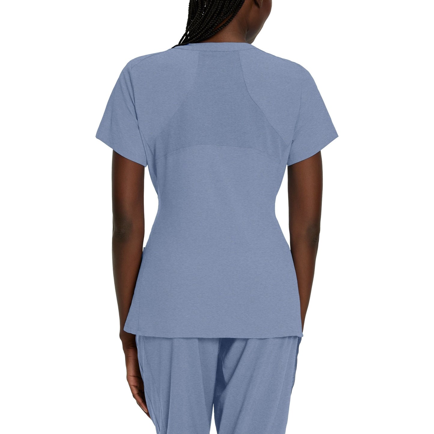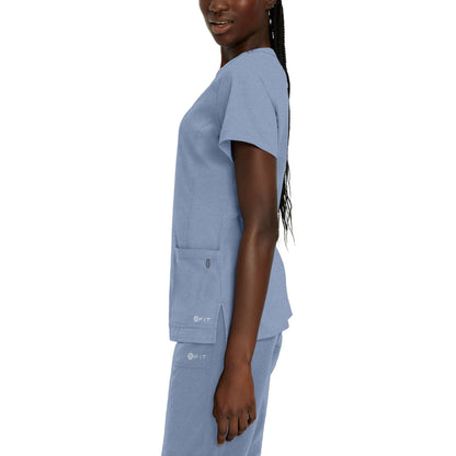 Our FIT women's 2-pocket V-neck scrub top features a 4-way super stretch for maximum comfort and flexibility. This quick-dry fabric pulls moisture to the surface so your skin feels dry through your most active shifts. This V-neck scrub top is cut to a contemporary slim fit that's contoured to conform to your body and complement your shape. You'll find a mesh knit racer back for ventilation, side vents for extra ease of movement, and princess seams for feminine shaping on this moisture-wicking scrub top.