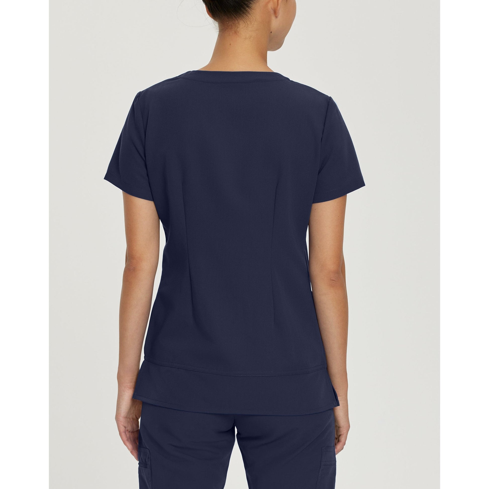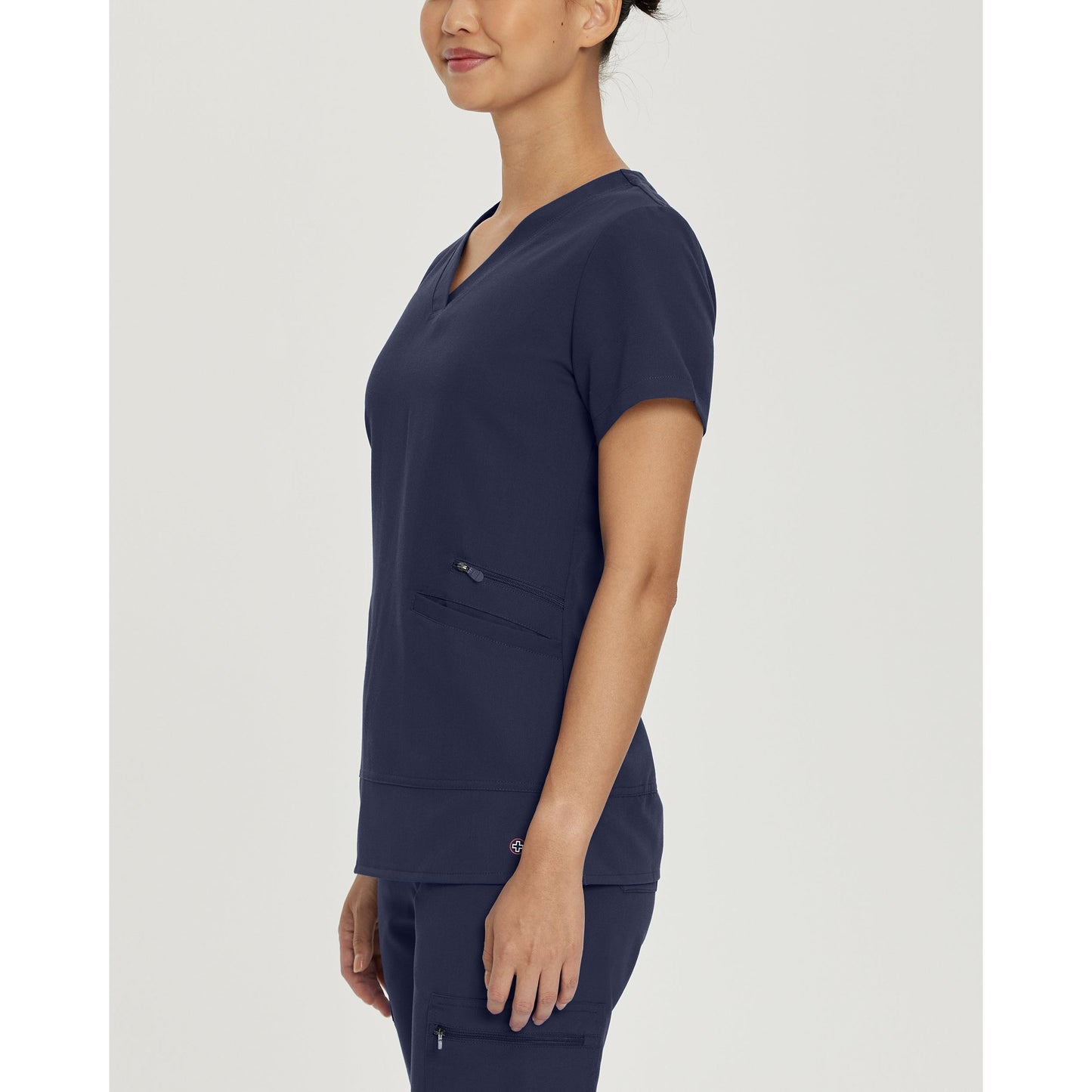 Our V-Tess women's 3-pocket V-neck scrub top features a breathable 4-way super stretch for maximum comfort and flexibility and vibrant colors that last wash after wash. This V-neck scrub top is cut to a contemporary slim fit that's contoured to conform to your body and complement your shape. You'll find side vents for extra ease of movement, a stylized seam at the hem, and back darts for a flattering shape on this V-neck top.