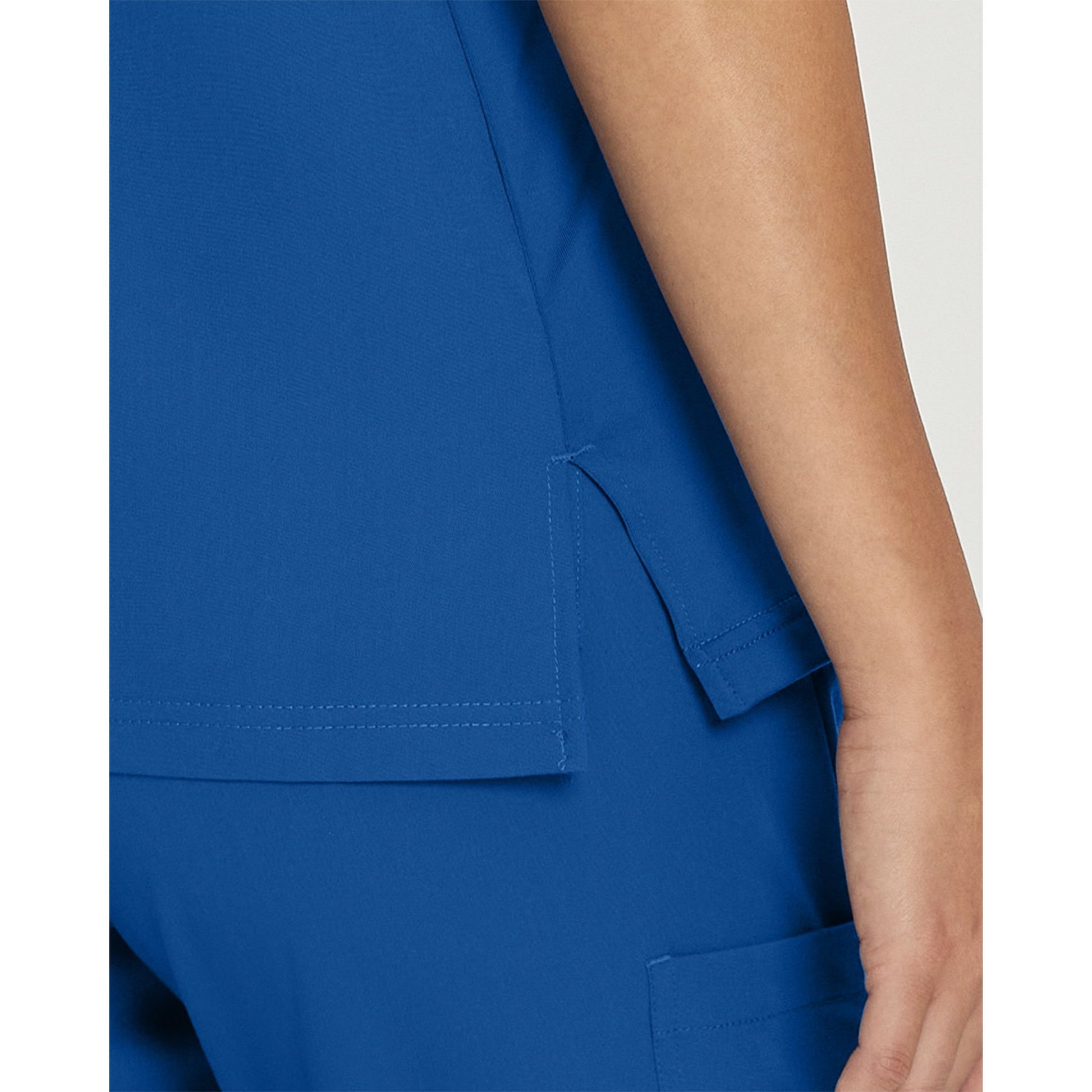 At White Cross, we know that healthcare professionals are often called upon to be exceptional, which is why we make our garments exceptional too. The V-Tess women's 4-pocket V-neck scrub top is fade resistant and wrinkle resistant with a jersey-knit front and back yoke for ventilation. This top also has front and back princess seams for feminine shaping, side vents for extra ease of movement, and a super stretch.
