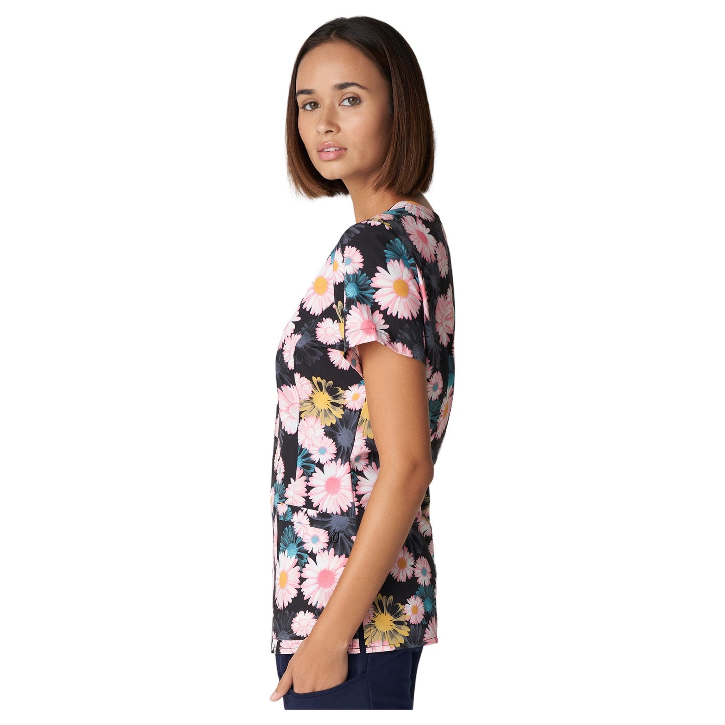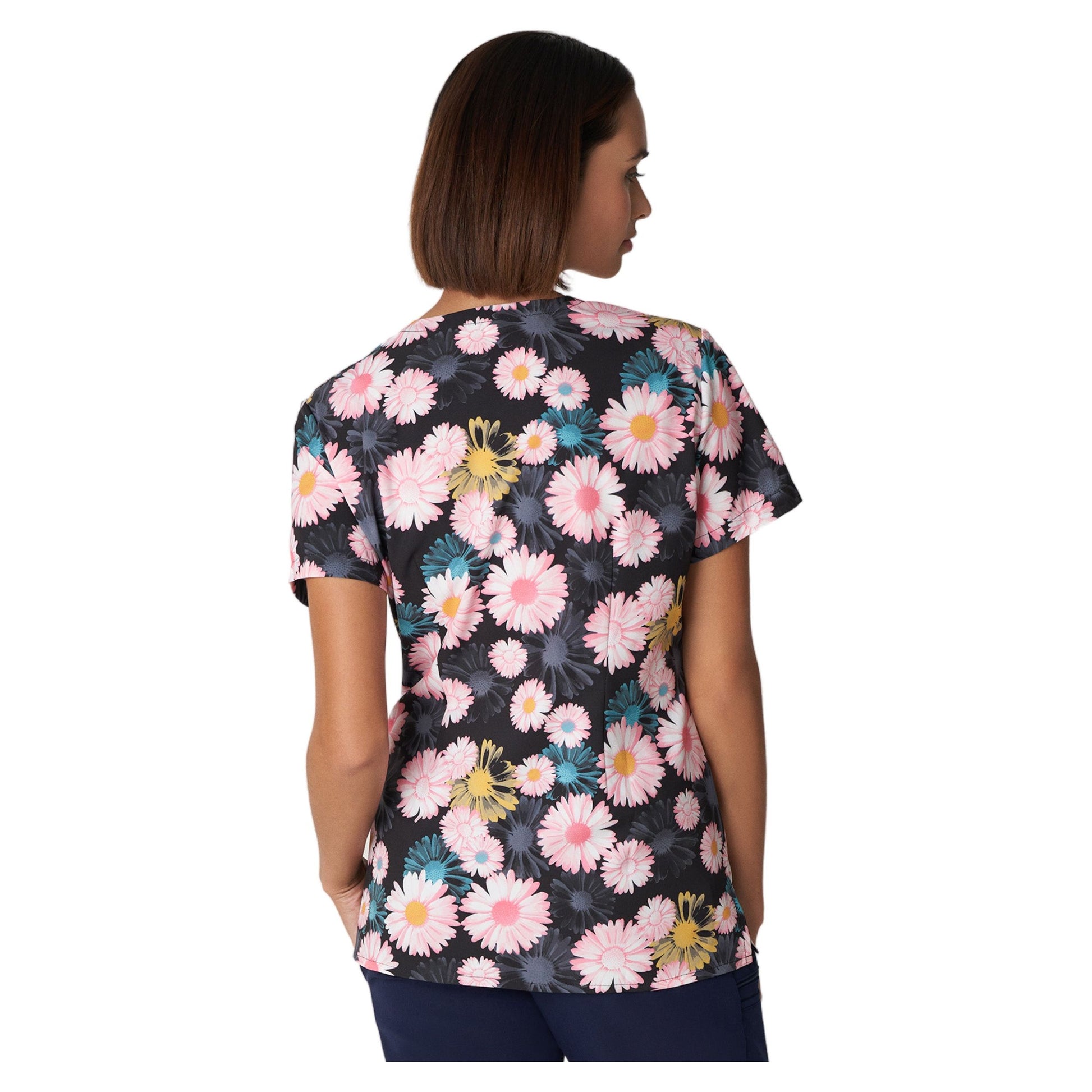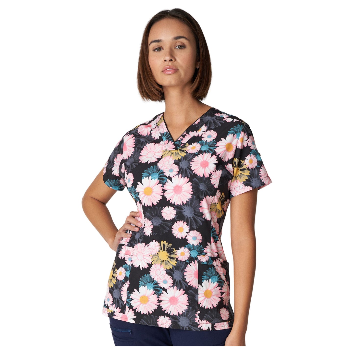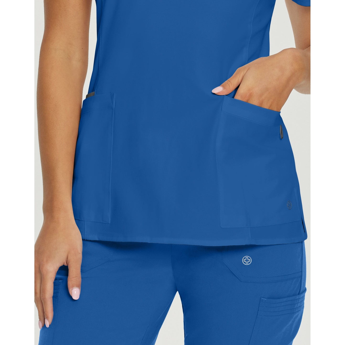 Our Marvella women's 3-pocket V-neck scrub top will both flatter your body and feel luxurious on your skin. The breathable, wrinkle-resistant material provides unmatched luxury and sophistication with a subtle 2-way stretch for added comfort and mobility while you work. This scrub top has back darts to help complement your shape, in addition to flattering back darts and princess seams.
