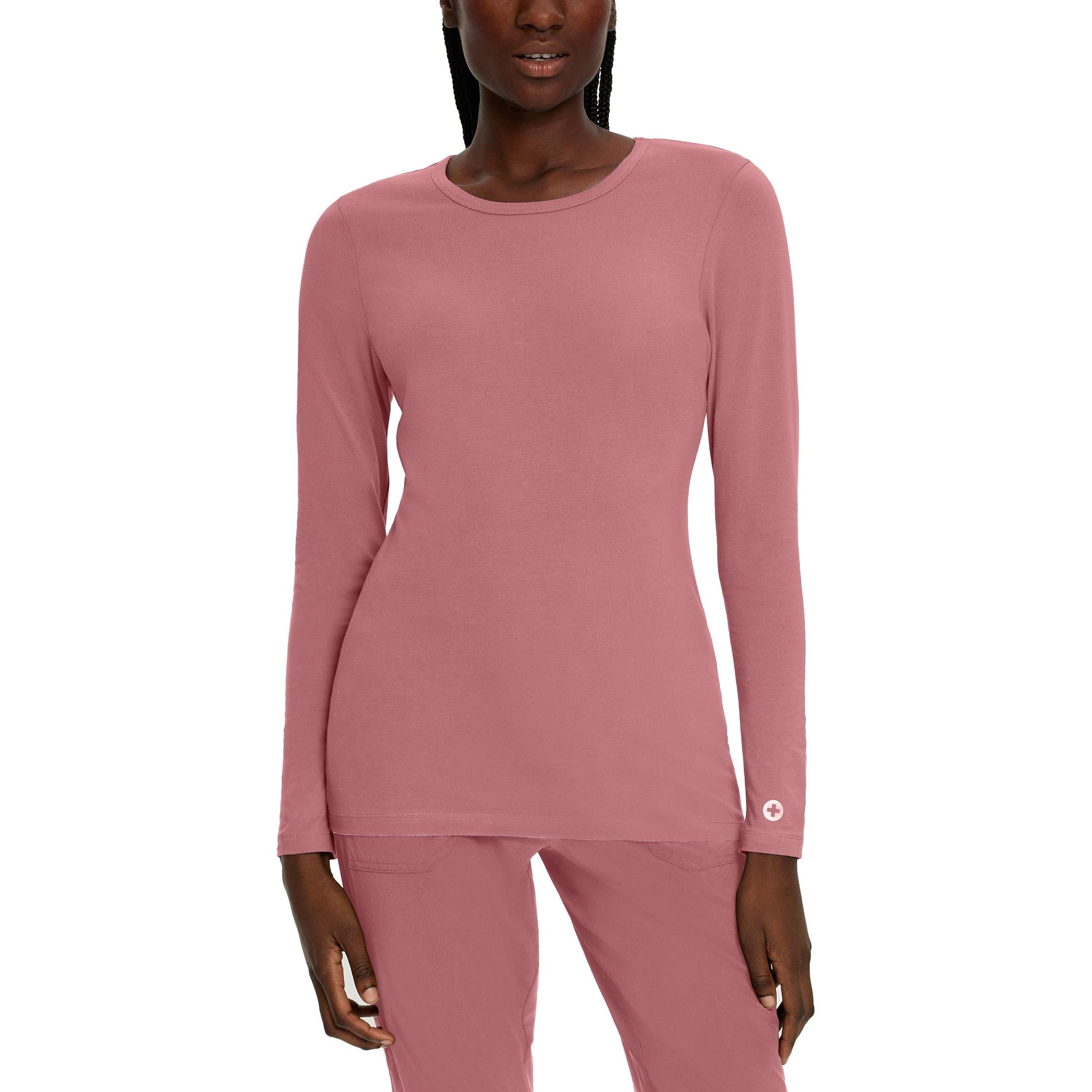 Designed and crafted for exceptional individuals. This breathable, extra soft jersey knit long-sleeve tee is contoured to fit your body and complement your shape. Meant to be worn from day to night, this crew neck under scrub offers 4-way stretch for extra mobility and comfort so you can perform your best at any time. Exceptional quality, exceptional style for exceptional people.