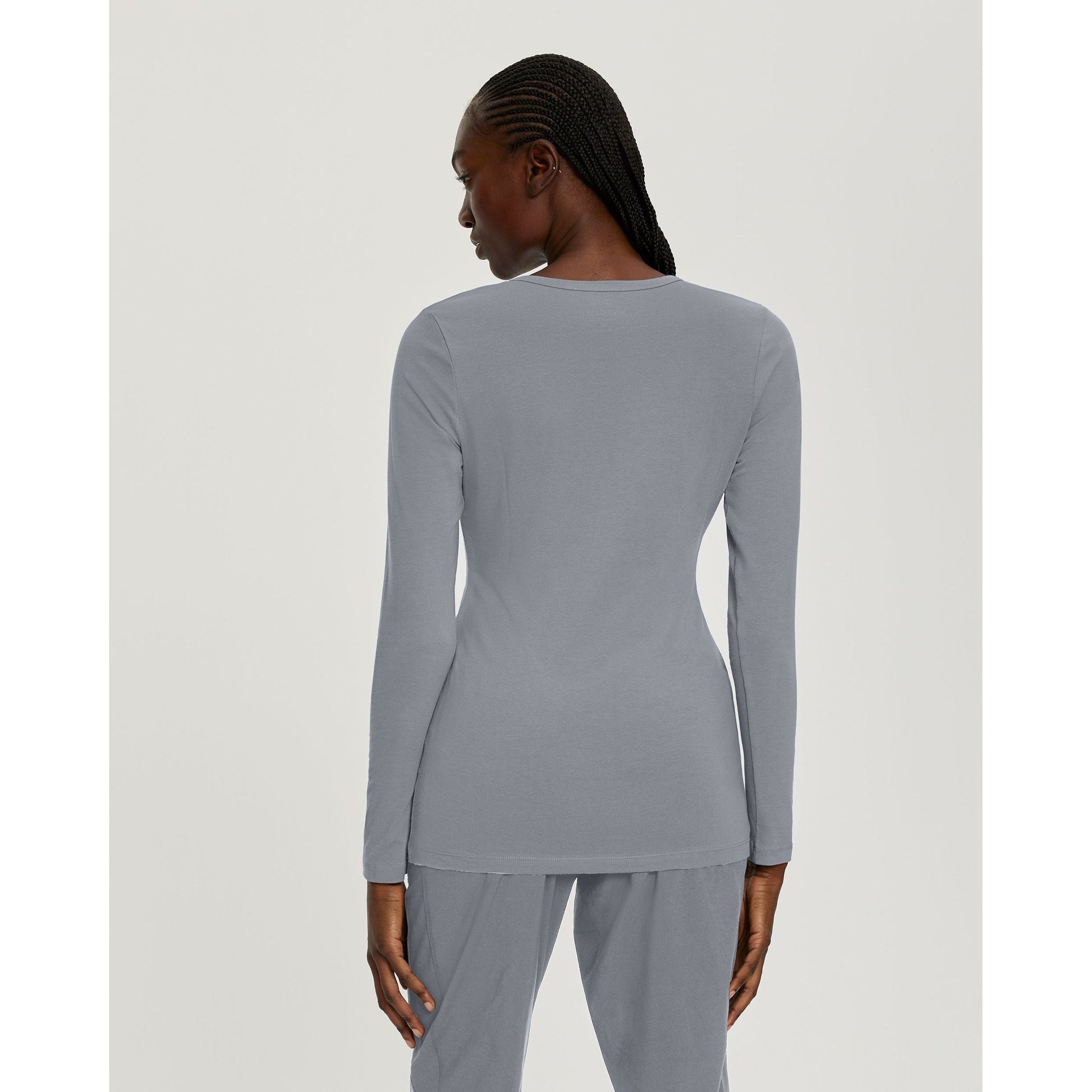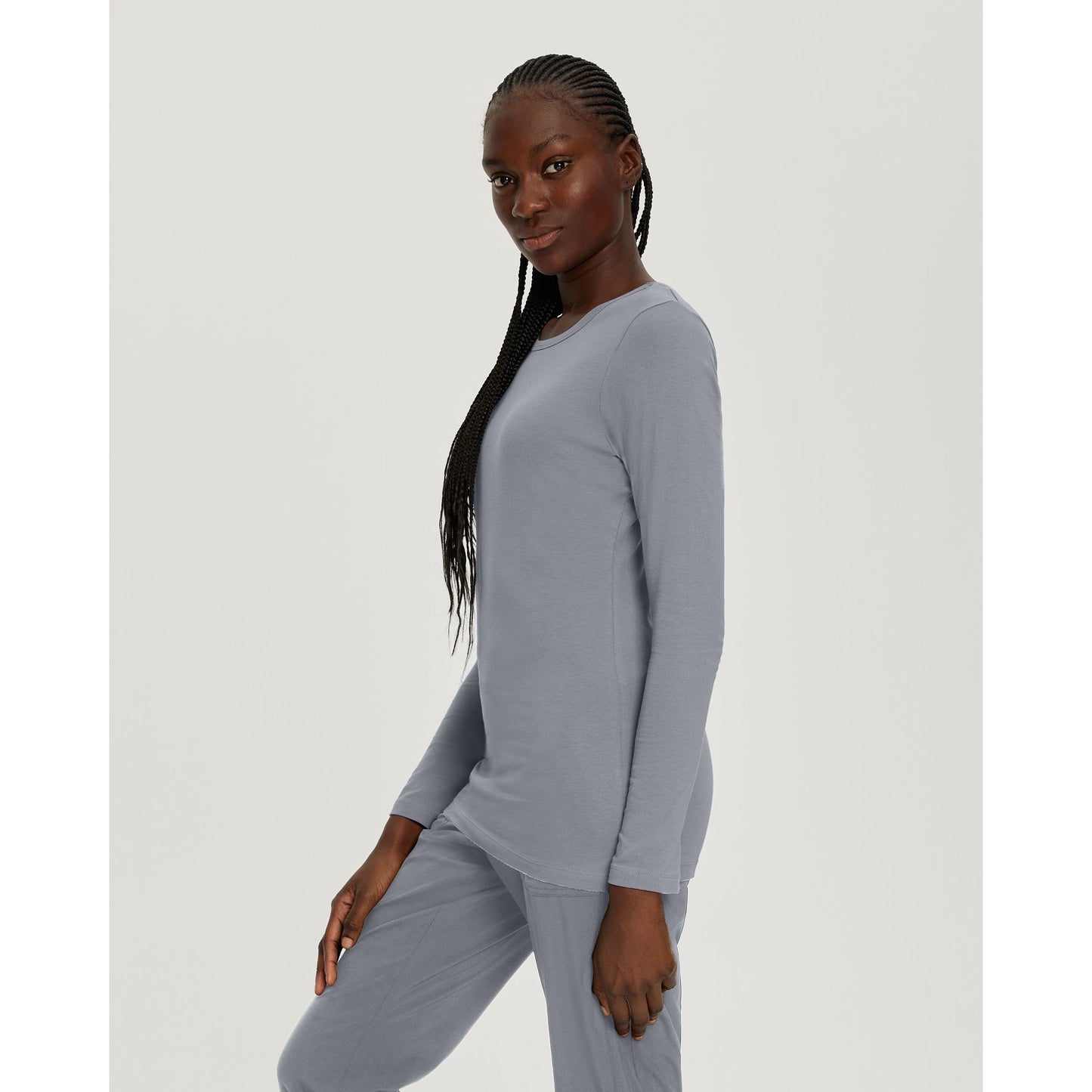 Designed and crafted for exceptional individuals. This breathable, extra soft jersey knit long-sleeve tee is contoured to fit your body and complement your shape. Meant to be worn from day to night, this crew neck under scrub offers 4-way stretch for extra mobility and comfort so you can perform your best at any time. Exceptional quality, exceptional style for exceptional people.